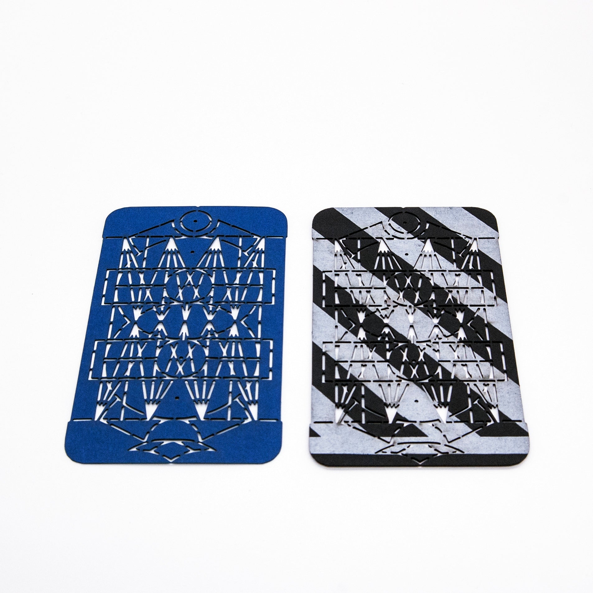 \nLefebvre realized that it would be relatively easy to create a contemporary version of David's tool using a laser. To provide context, each 2023 version is accompanied by a copy of the original leaflet that accompanied the tool when it was first sold. The result is a set that valiantly attempts to recreate the original material that type enthusiasts could purchase in Paris at the 1878 World's Fair. Lefebvre used cardboard scraps from previous projects, taking a sustainable approach to his modern facsimile.