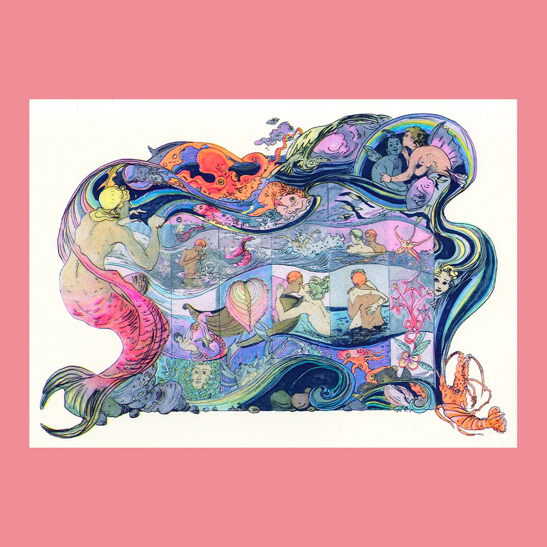 Impression en risographie 5 couleurs sur papier Munken Pure Rough 150gr basé sur un dessin de l'artiste Gabrielle Kalnins
