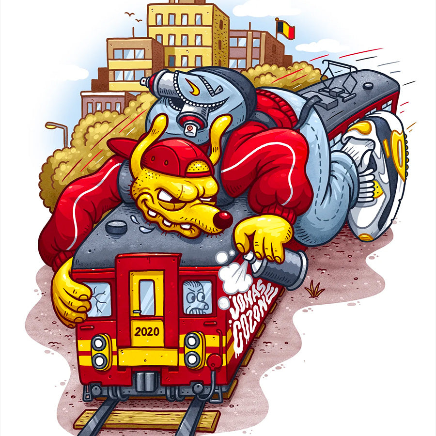Belgian artist Jonas Cozone moves between graffiti, illustration, and a deep passion for sneakers. From his studio in Liége, he shares his influences — especially 90s hip-hop, with a particular focus on France — expressed through both music and fashion from that era.