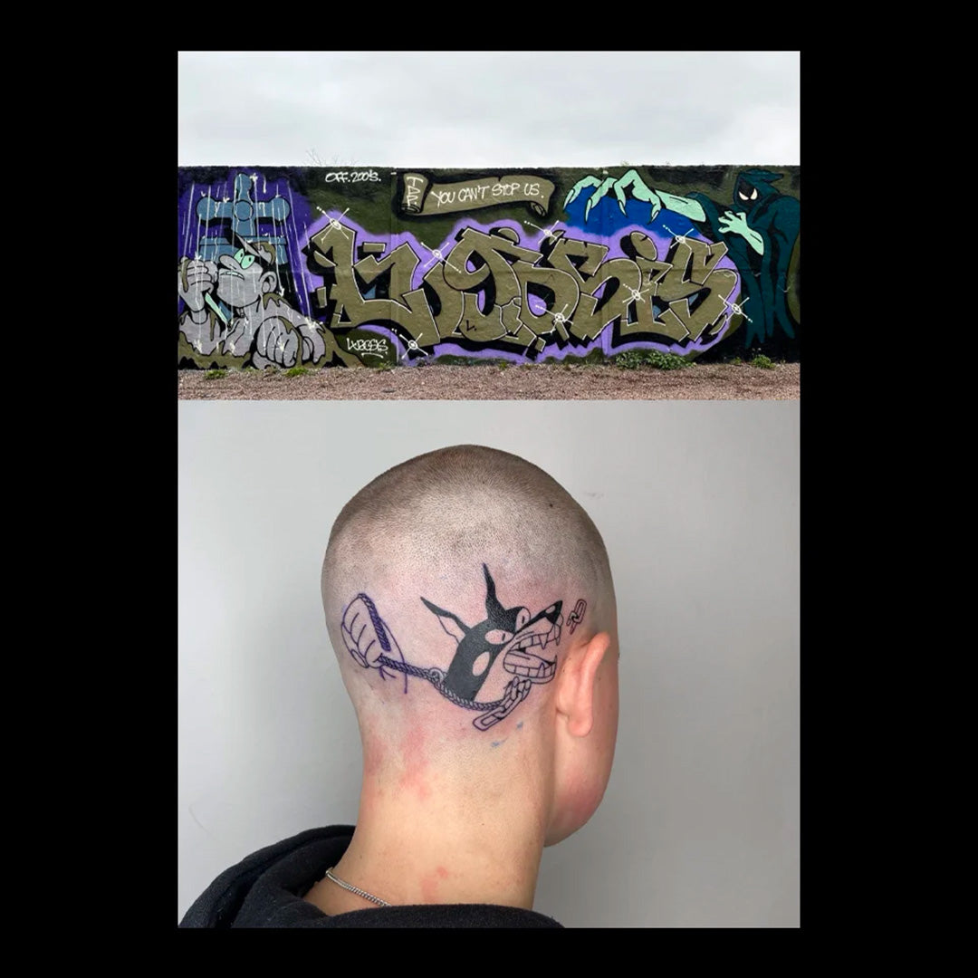 Fueled by a passion for drawing shared with his twin brother within their family in Italy, Lugosis has forged his own path — first through graffiti, then through tattooing. Over time, he has developed a style that, while seemingly accessible, draws us into much deeper territory.