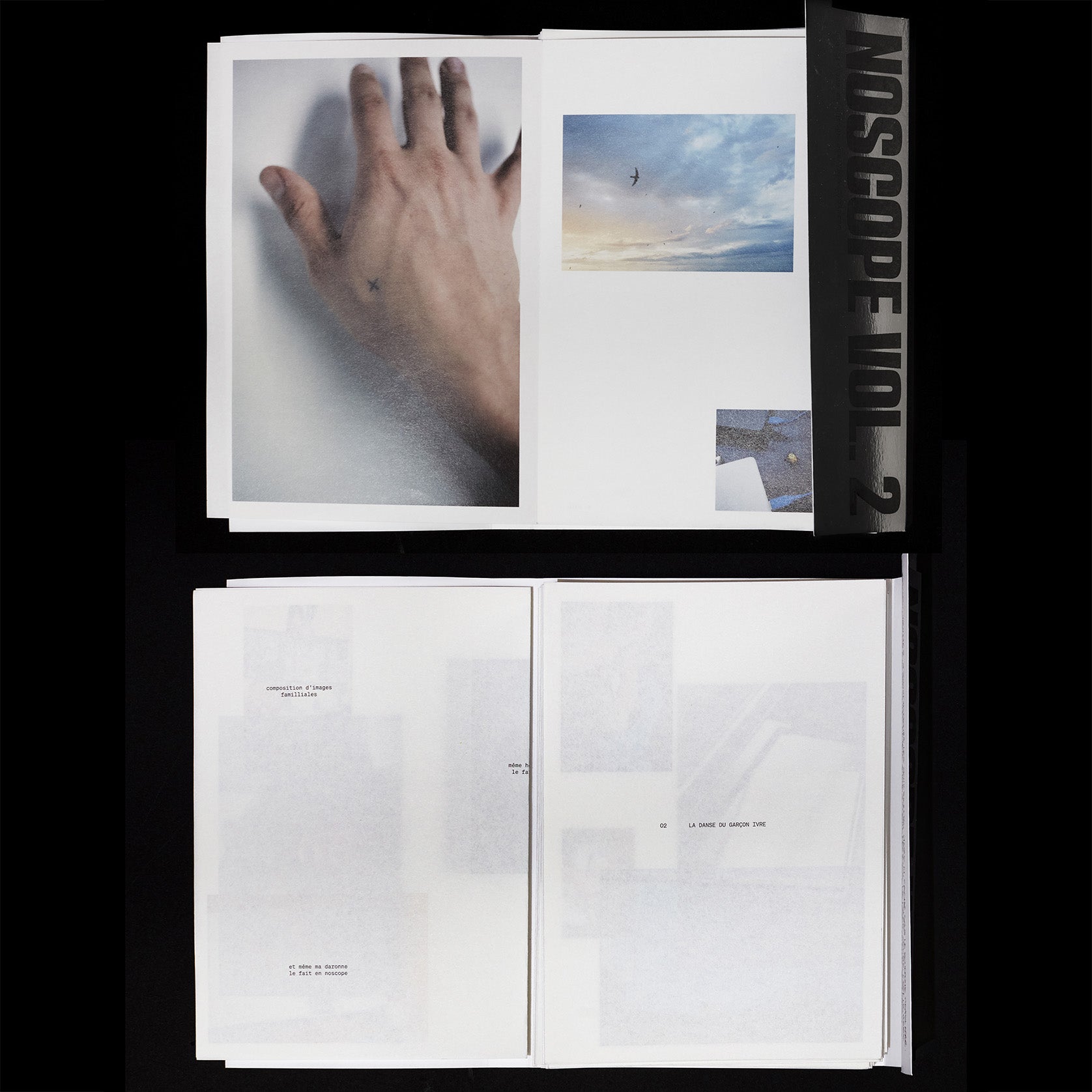 Projet d’édition photo qui revisite le concept de la mixtape en le transposant à l’impression. Dans une édition composée de huit chapitres, chacun pré-nommé d’un chiffre de un à huit comme une tracklist d’un album, le volume deux établit un travail de narration visuelle à travers des suites d’images disposées librement sur les pages des livrets. Dans la version physique, les livrets sont édités en leporellos — de grandes bandes de papier d’un mètre quatre-vingt pliées en douze — offrant au lecteur la possibilité de déplier le livret et d’embrasser d’un regard l’histoire racontée par la suite d’images.