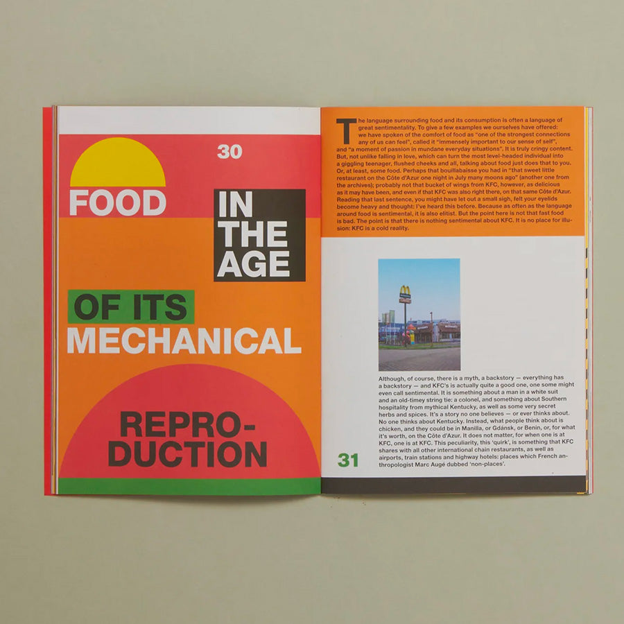 famous for my dinner parties is back for issue 003! After the ‘best-of’ character of issue 001 and the mono-themed ‘food fad issue’ 002, number three is again somewhat more loosely conceived — less of a theme issue than a concept zine that aims to tap into certain elements of the zeitgeist. It consists of ten brand-new pieces in the form of essays, compilations of shorts, a still life series and even fiction — all circling around the anxieties of being alive in the world today and the way they reflect in what and how we eat. With pieces on chef culture, food diplomacy, paranoia about food safety, microwaves, internet urban legends and food crimes, the magazine’s graphic design takes cues from tabloid newspapers to fit the salaciousness and scandal-ridden character of its topics. Issue 003 is famous for my dinner parties’ signature blend of cultural criticism and bold, vibrant imagery at its best.