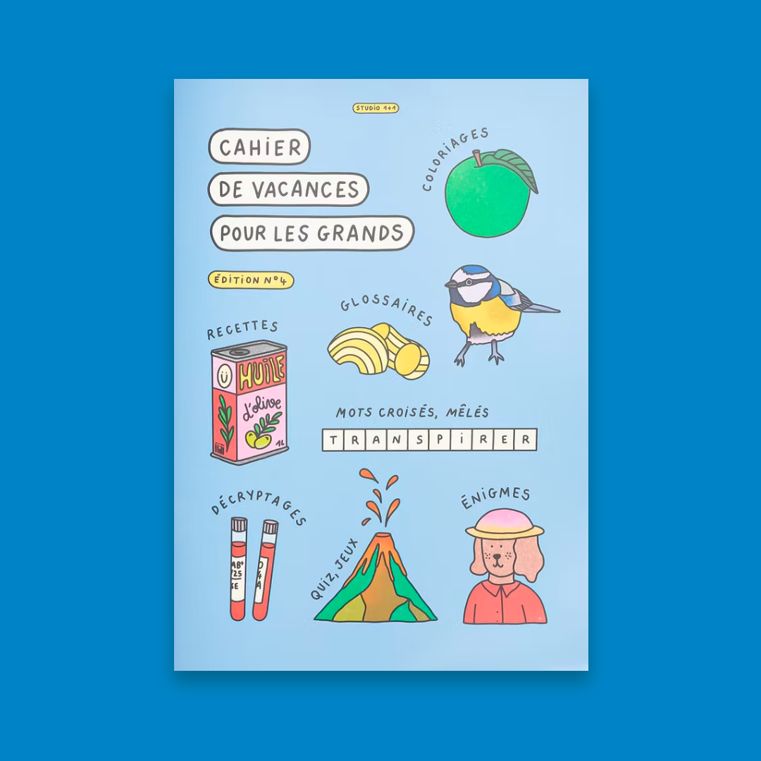 Édition n°4 du cahier de vacances pour les grands… qui veulent s’amuser comme des enfants. Le cahier de vacs 1+1, c’est un concentré de créativité, de jeux malins et de découvertes futées, entièrement illustré à la main