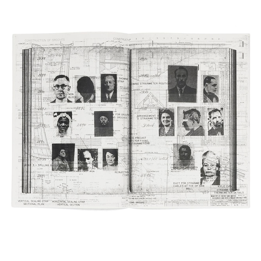 I arranged them in a stamp album and then photocopied this album onto repurposed architectural blueprints.