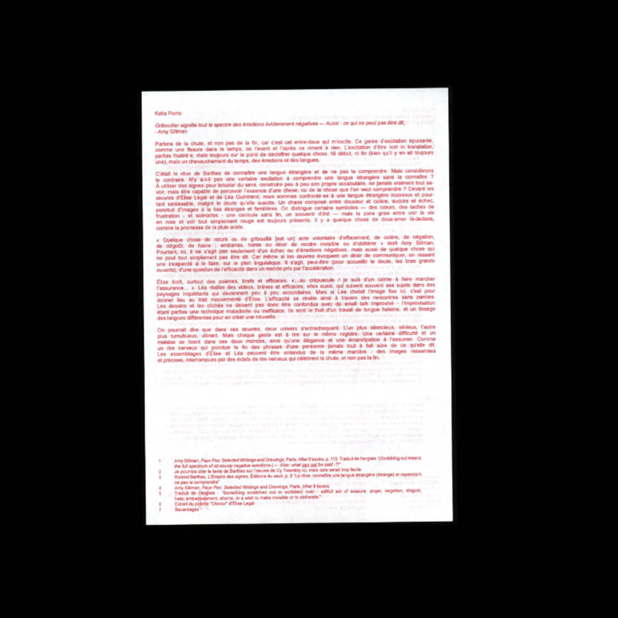 Pour l’occasion, la curatrice et critique Katia Porro avait écrit un texte, reproduit au dos
