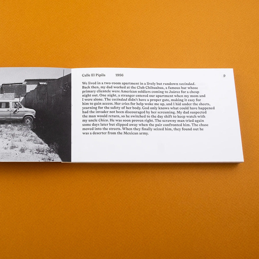 Arturo Soto (MX) grew up listening to his father’s stories about his youth in the twin cities of Juárez (Mexico) and El Paso (USA), fascinated by how much things had changed in just a generation. Over time, he compiled and narratively shaped his father’s memories, then photographed the sites where they occurred. Border Documents is a personal archive of ordinary events that reveals how emotions become attached to public spaces. Most importantly, the book stands apart from the reductive media coverage of the border that focuses solely on the violence caused by drug trafficking, illegal migration, and corruption. The different temporalities expressed through the mediums of photography and writing produce a vivid account of a territory that plays a vital role in global trade. Oscillating between the personal and the political, Border Documents reminds us, as the critic Edward Soja once remarked, that biographies are geographies as much as they are histories.