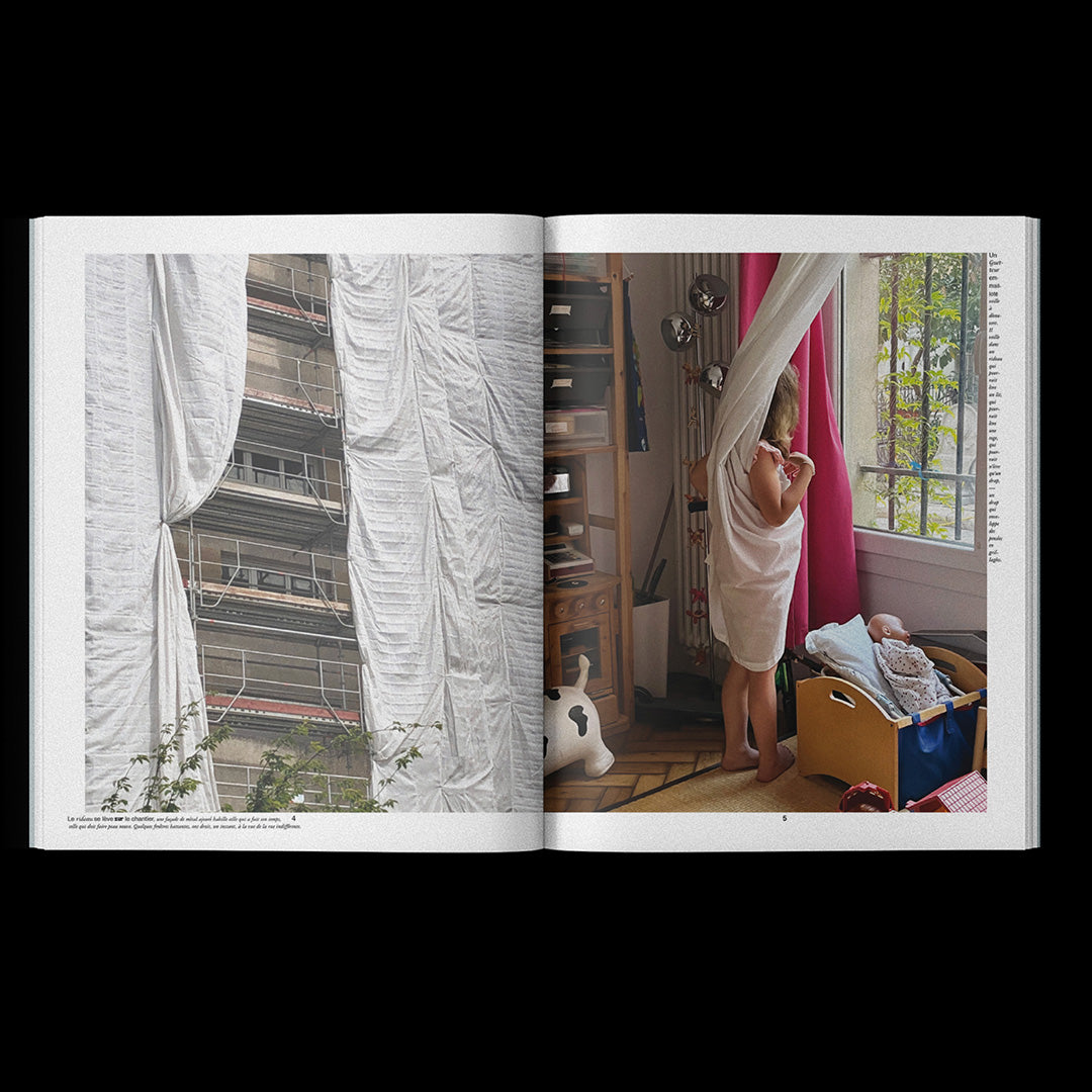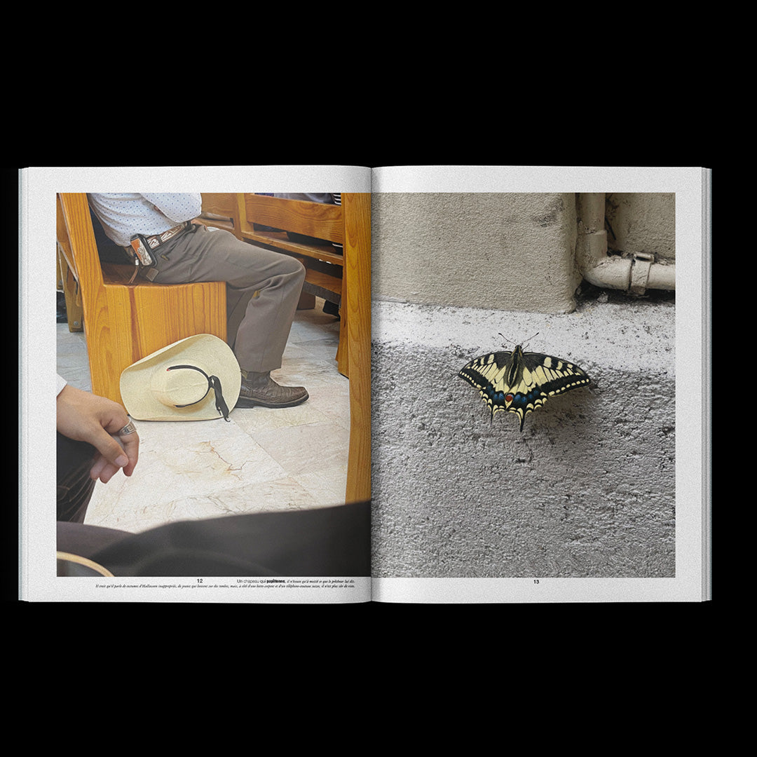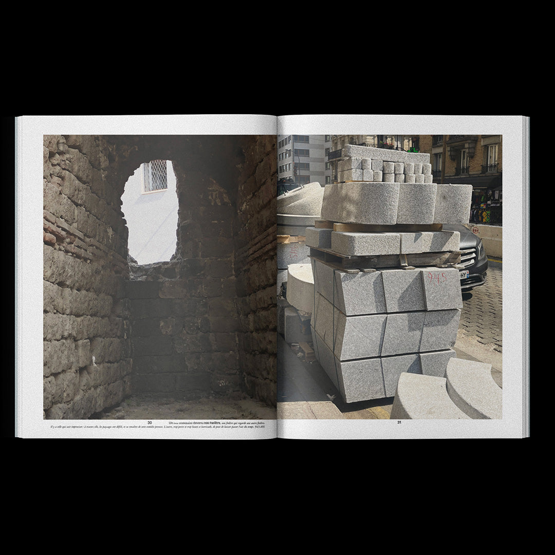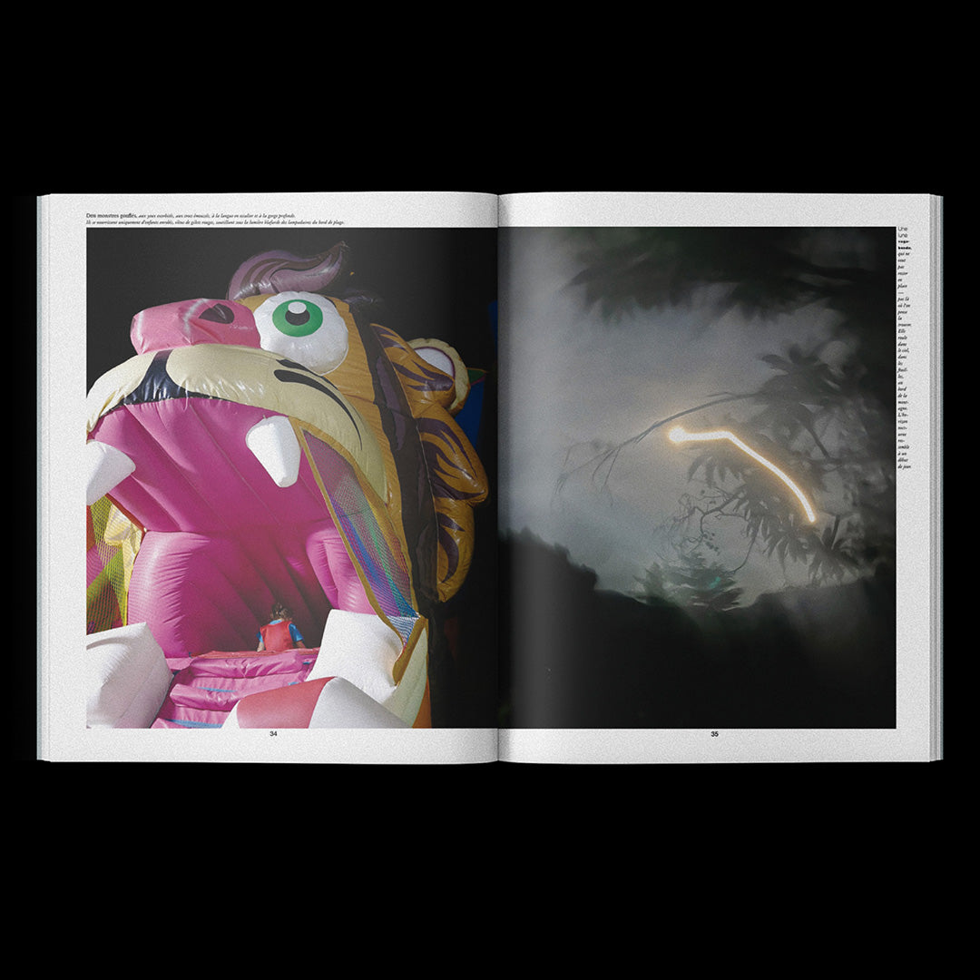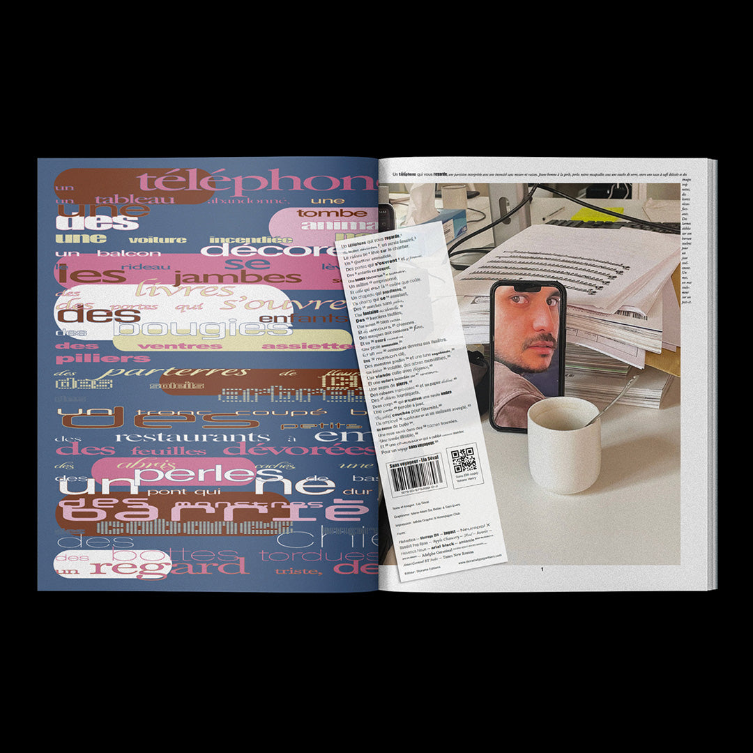 Sans voyageur takes the form of a large unbound tabloid, a poetic editorial project built as a constellation between print and sound design, weaving together photographic and textual landscapes with field recordings. Lia Séval brings together images rescued from her phone, paired in unexpected diptychs that blur the boundaries between the real and the imaginary, the shaped and the untamed, the absurd and the reasonable, the forgotten and a fragmented memory. Around them unfold prose poems that act as gloses, attempting to explain the unexplainable, while her gaze captures fragments of beauty in a world marked by contradiction and obsolescence, revaluing them as treasures and happy accidents. Her photographs reveal an accidental creativity, emerging almost by chance from non-artistic contexts, without ever losing their fragile magic. Infused with the forces of childhood, unruly nature, and the sacred aura of found objects, the book traces a journey without itinerary, without traveler. Edited by Diorama in collaboration with Marie-Mam Sai Bellier, Sam Evers, and Yohann Henry, it is published in only 50 copies, combining indigo-printed covers, newsprint interiors, and a risograph poem-bookmark, accompanied by a soundscape accessible via QR code.