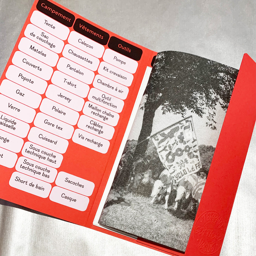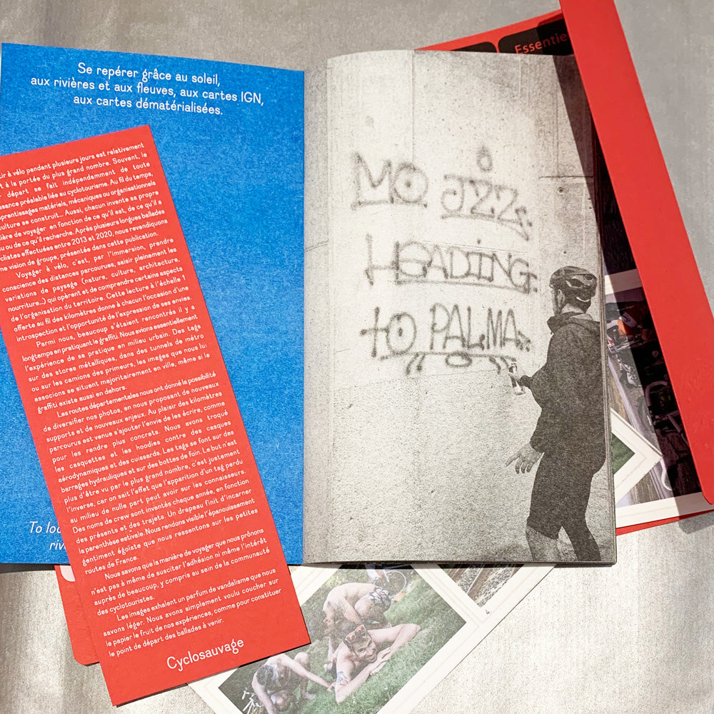 « Après 8 ans de randonnées à vélo, j’ai réuni assez d’images pour mener un projet d’édition permettant de partager ces expériences cyclistes. Huit années d’épopées collectives pendant lesquelles les petites routes de France ont fourni un nouveau cadre à la pratique de notre passion première qu’est le graffiti. » Cyclo Sauvage est un kit artisanal conçu par @local_service et édité par @editionsterrainvague qui se situe entre un carnet de voyage, un livre d’art et un album panini.
