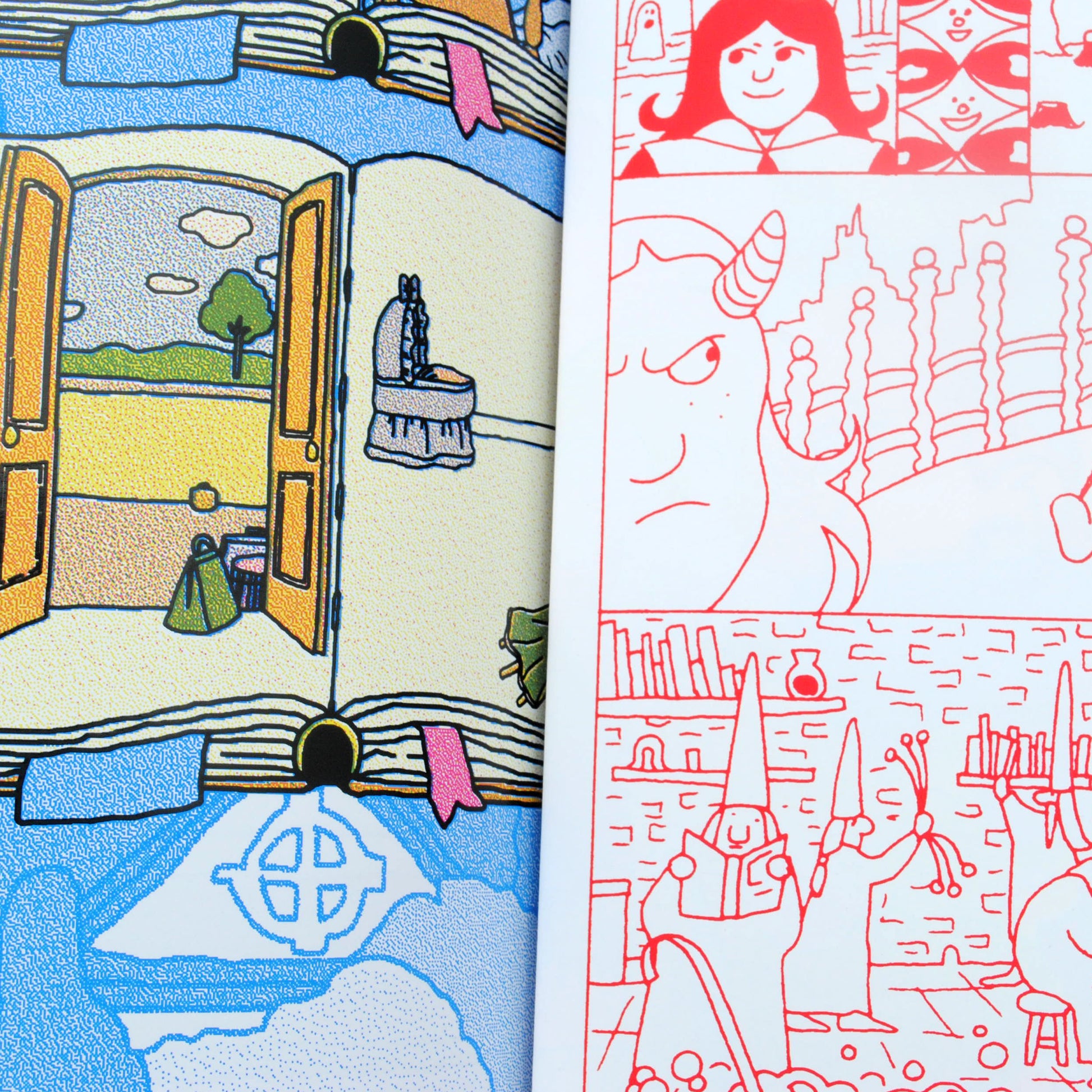 Après un entraînement interminable de deux ans et demi, beaucoup de pas chassés et de montées de genoux, le coach Elie Partouche est parvenu à rassembler son équipe de 14 autrices et auteurs. Un nouveau match en 56 pages de 30x40cm avec une tentative de tactique audacieuse mêlant sérigraphie et offset, un objet entre livre et collection d'affiches. Une fanfare de dessins, peintures, bandes dessinées et images hybrides galvanisée par une ola de tons directs. Passe en Profondeur est une maison de micro édition strasbourgeoise conduite depuis 2017 par Elie Partouche, auteur, dessinateur, graphiste et sérigraphe. Derby est sa troisième tentative de réunir une équipe au sein d’un livre sérigraphié, toujours dans la perspective de mettre un savoir-faire technique au service de propositions graphiques multiples et de projets singuliers.