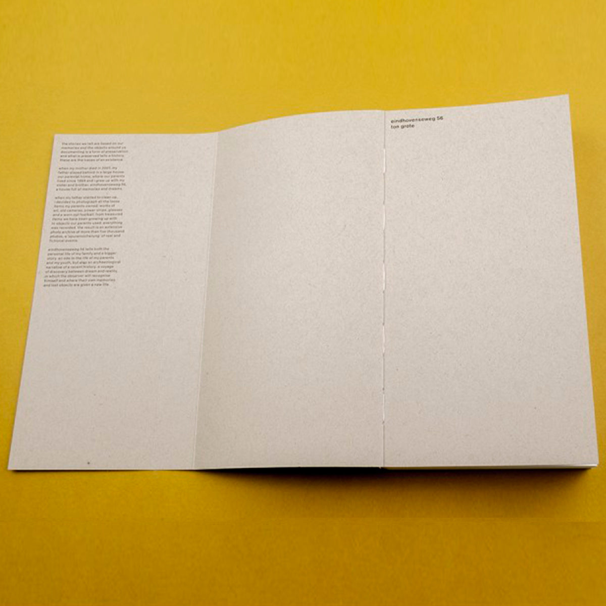 \nLorsque la mère du photographe Ton Grote (NL) est décédée en 2007, son père est resté dans une grande maison. La maison parentale où ses parents vivaient depuis 1969 et où il a grandi avec son frère et sa sœur. Eidenhovenseweg 56, une maison pleine de souvenirs et de rêves. Lorsque son père a commencé à faire le ménage, Ton Grote a décidé de photographier tous les objets perdus que possédaient ses parents : théières, vieux appareils photo, multiprises, lunettes et même un ballon de football usé. Des objets précieux avec lesquels il a grandi aux objets utilisés par ses parents : tout a été enregistré. Le résultat est une vaste archive de plus de cinq mille photos, dont 2 262 ont été intégrées dans le livre, une archive d'événements réels et fictifs.