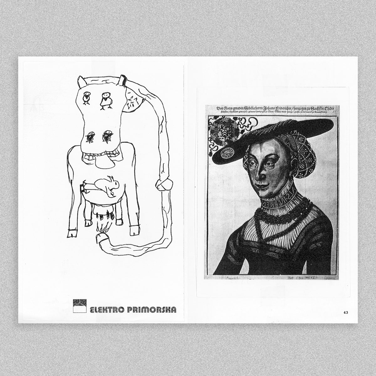 Elk began in June 2003, and over the next fourteen years it published 34 issues, always in the same photocopied 5 3/8 × 8" saddle-stitched format, some sixty pages long, with a black-and-white interior and a color cover. Both ruminative and crudely constructed, it relies on a conduit of spontaneous connections gleaned from found materials, assembled in sometimes direct but more often enigmatically allusive associations. Each page presented image-text pairs borrowed from a plethora of sources, photographs from unorthodox books and periodicals, artworks, historical documents, letters, poems, unsolicited emails, briefing notes, and advertisements, placing them in singular contexts with the aim of drawing out evocative metaphorical and metaphysical affinities, embedded in formal vibrations and compositional. Reproducing and rescaling each image or excerpt, the work distills a combination of often unfamiliar source materials that negate notions of distinction between the enclosures of high art and the various subterranean effusions, creating through clarity of intention an ephemeral entity with mysterious origins. Seemingly devoid of any identifiable theme, yet arranged with a distant and discriminating Catholic sensibility, Elk ’s collaborative contents are linked to one another through tangible but recurrent and disquieting methods.