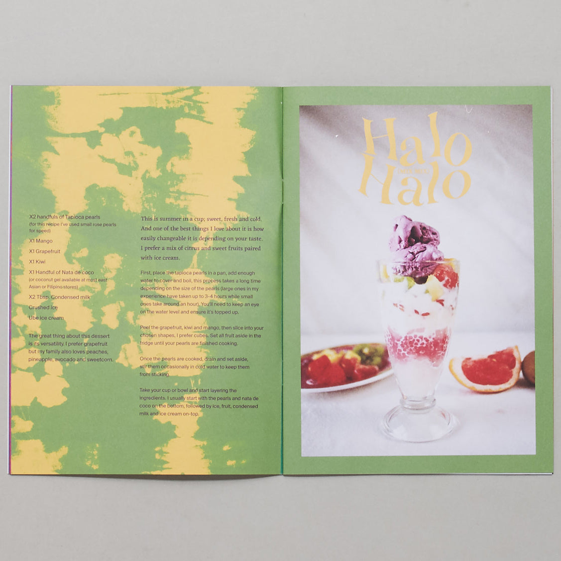We are proud to announce the release of FBZ #2. This issue focuses on a specific region: the Philippines. Continuing our documentation of Asian food culture, we delve into the rich diversity of Filipino food, highlighting its subtlety and its chaos through eight recipes made of opposing flavors (fat and acid, sweet and acid). This zine explores this cuisine that is too often underrepresented and which is not to be underestimated. The recipes in this issue include the classics Halo-Halo, Lumpia, Leche Flan and Ube Ice Cream.