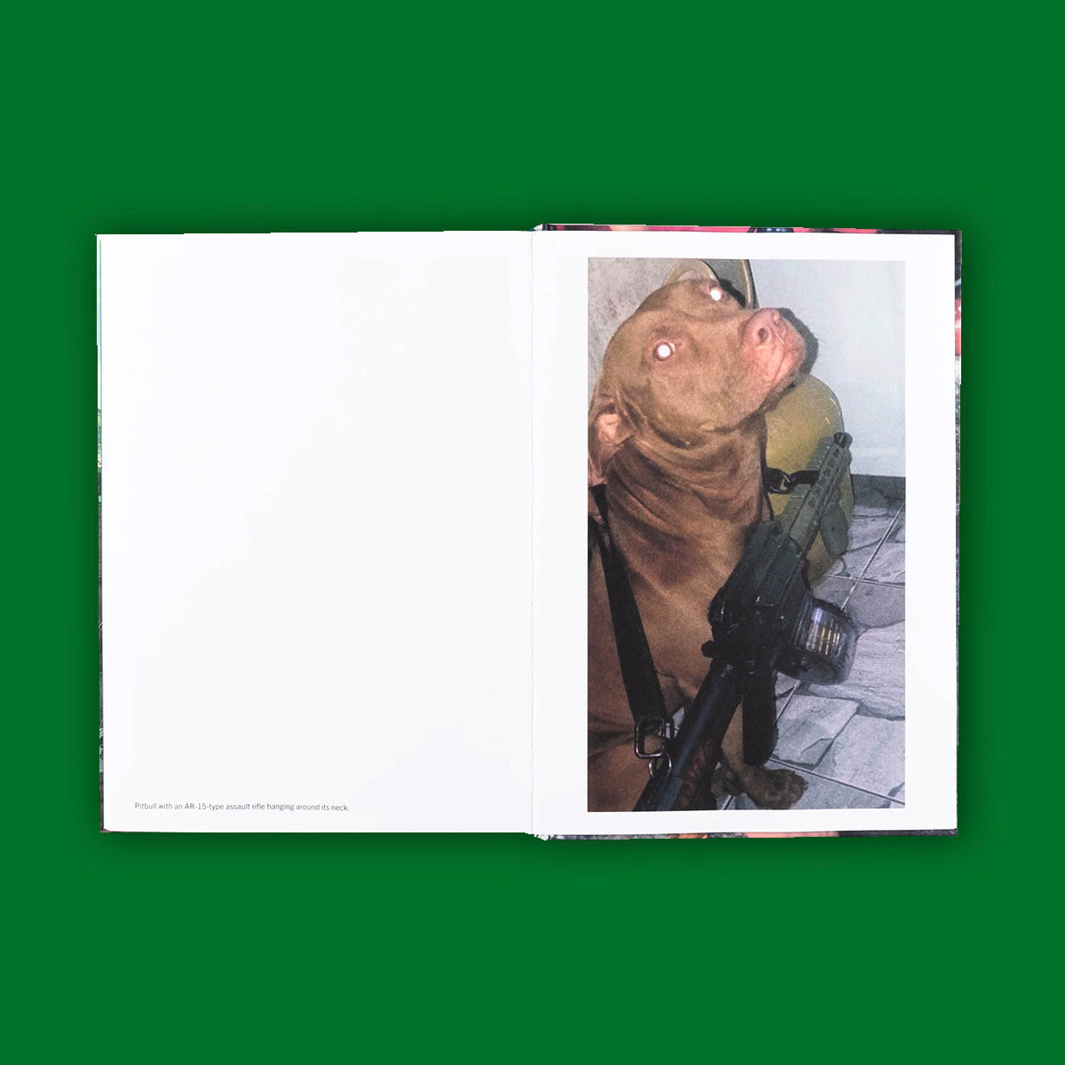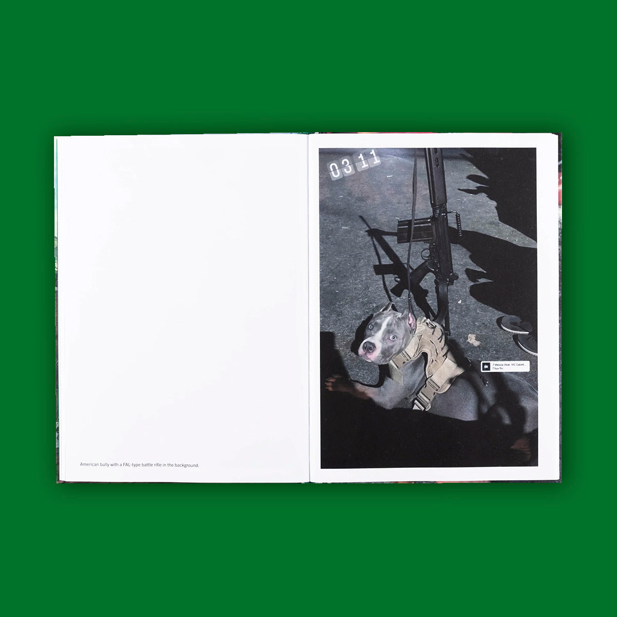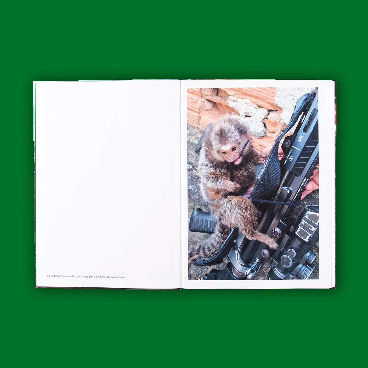 Favela Narco Pets - D'une trilogie de zines à un livre relié. L'idée initiale de la trilogie de zines Favela Narco Pets est née d'un dérivé de Favela Máfia, avec l'intention de mettre en lumière les aspects plus légers et amusants des groupes criminels tristement célèbres de Rio de Janeiro - en particulier le Comando Vermelho (CV) et le Terceiro Comando Puro (TCP) - en utilisant diverses plateformes de médias sociaux et un contenu exclusif, créé directement pour 550BC.