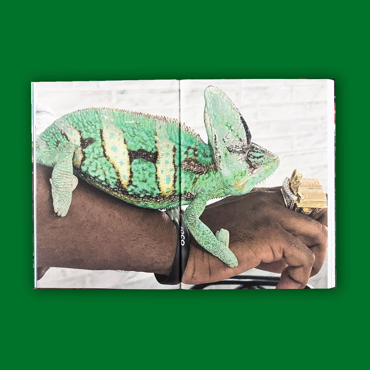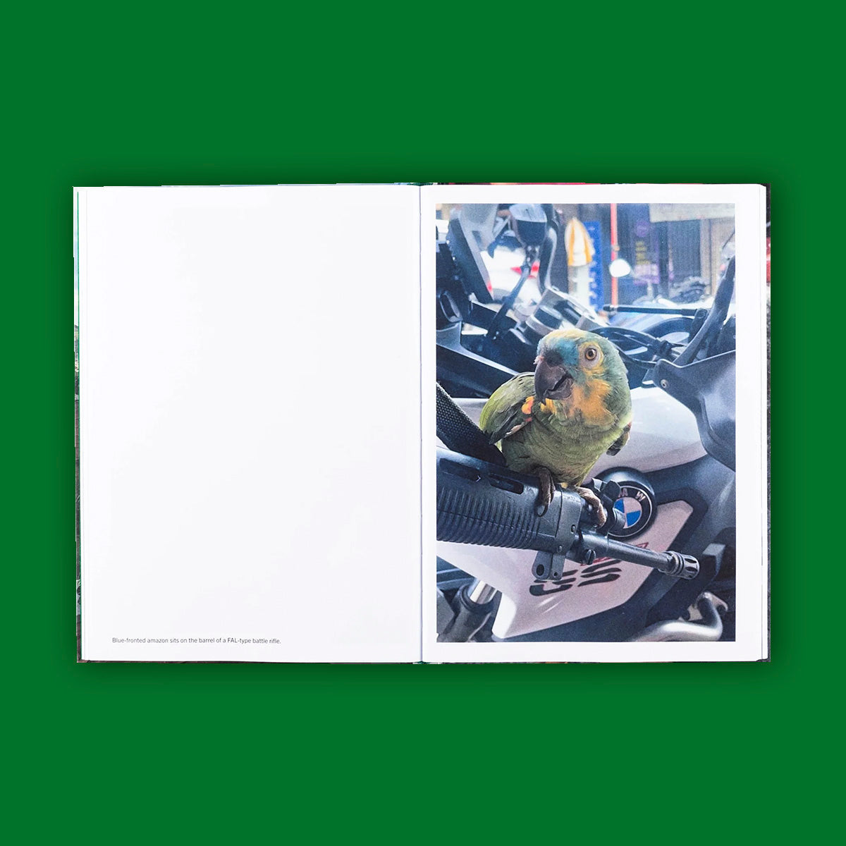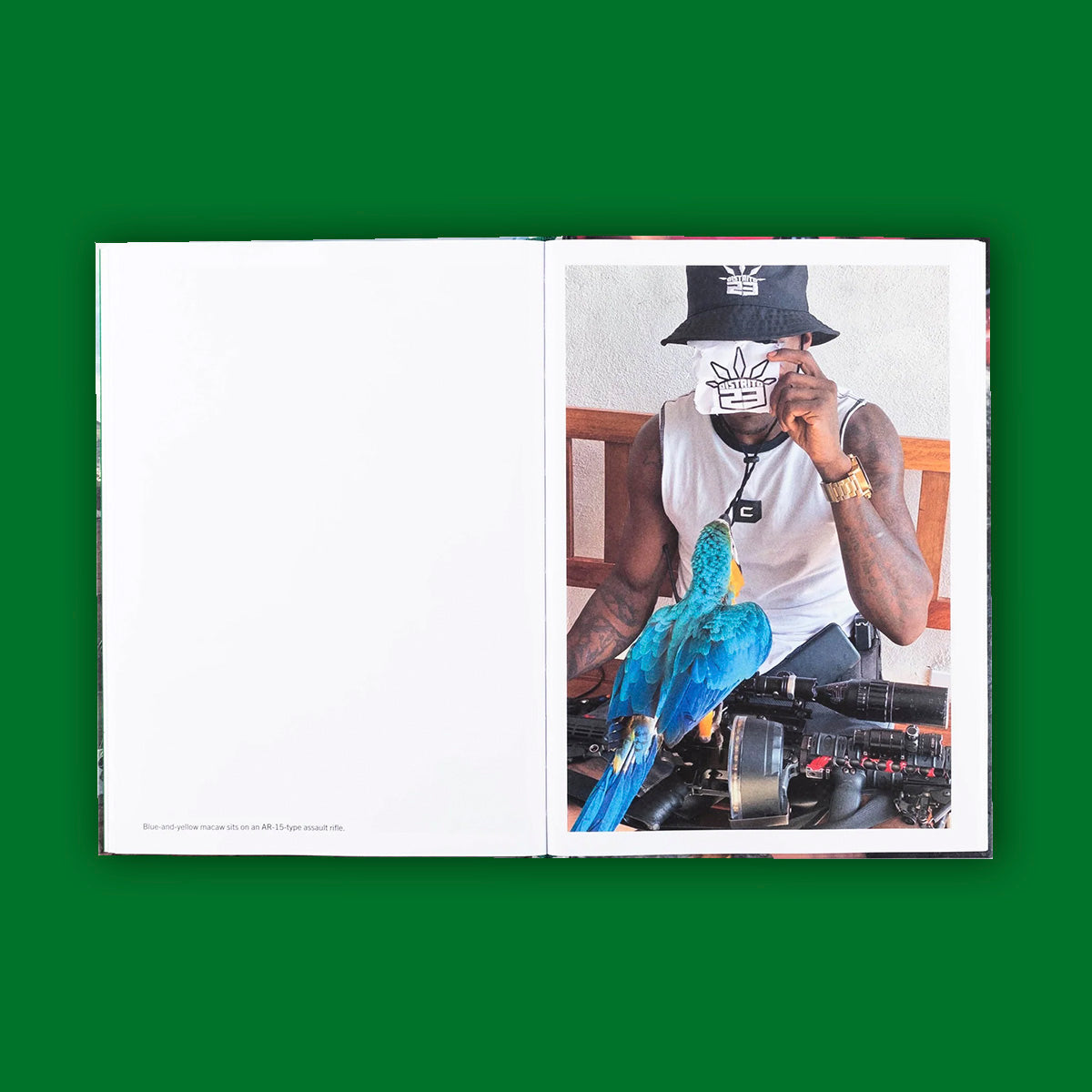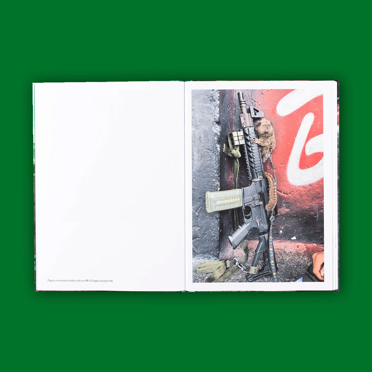 Favela Narco Pets - D'une trilogie de zines à un livre relié. L'idée initiale de la trilogie de zines Favela Narco Pets est née d'un dérivé de Favela Máfia, avec l'intention de mettre en lumière les aspects plus légers et amusants des groupes criminels tristement célèbres de Rio de Janeiro - en particulier le Comando Vermelho (CV) et le Terceiro Comando Puro (TCP) - en utilisant diverses plateformes de médias sociaux et un contenu exclusif, créé directement pour 550BC.