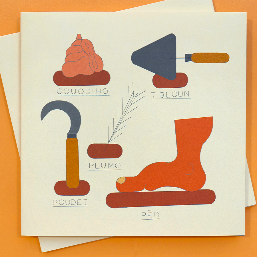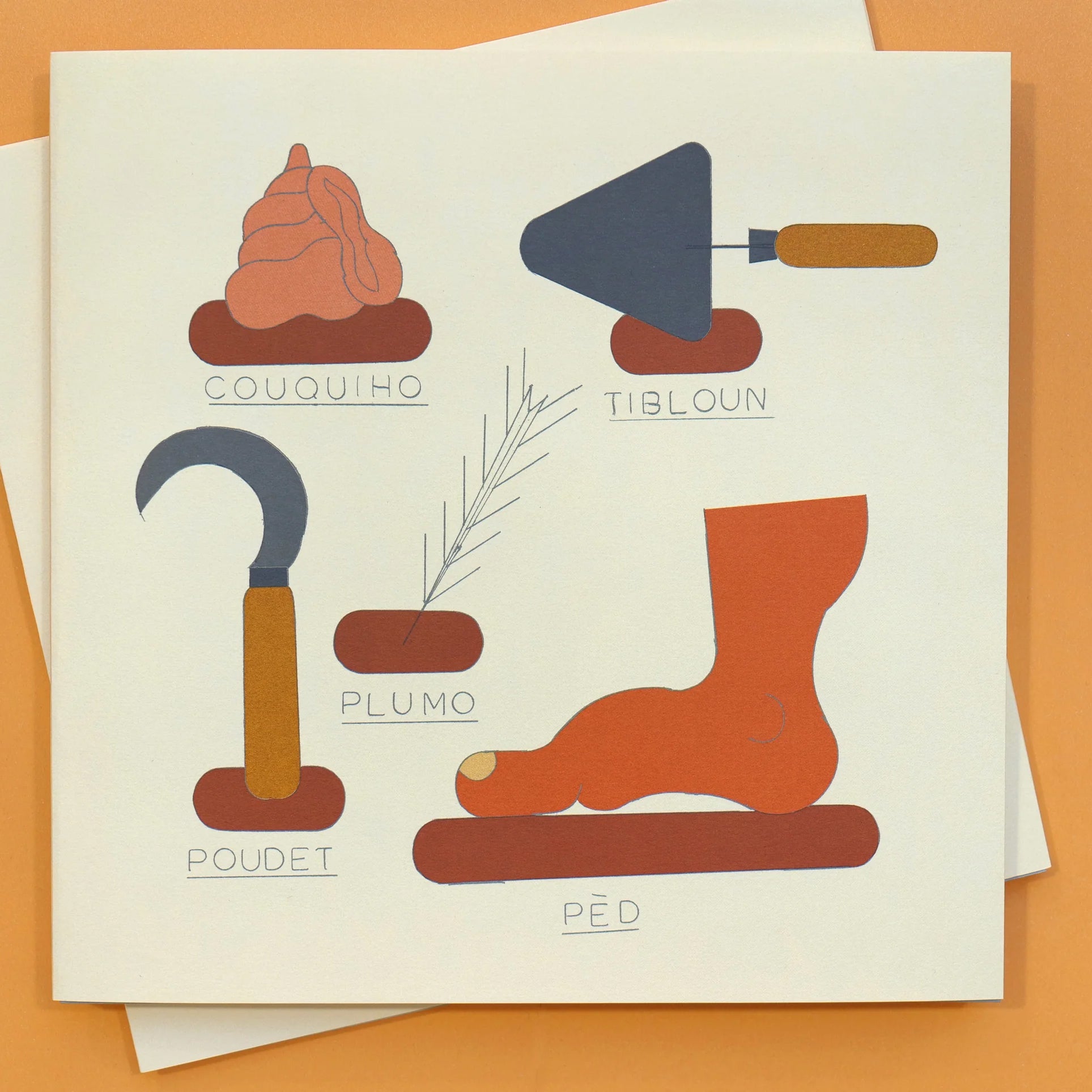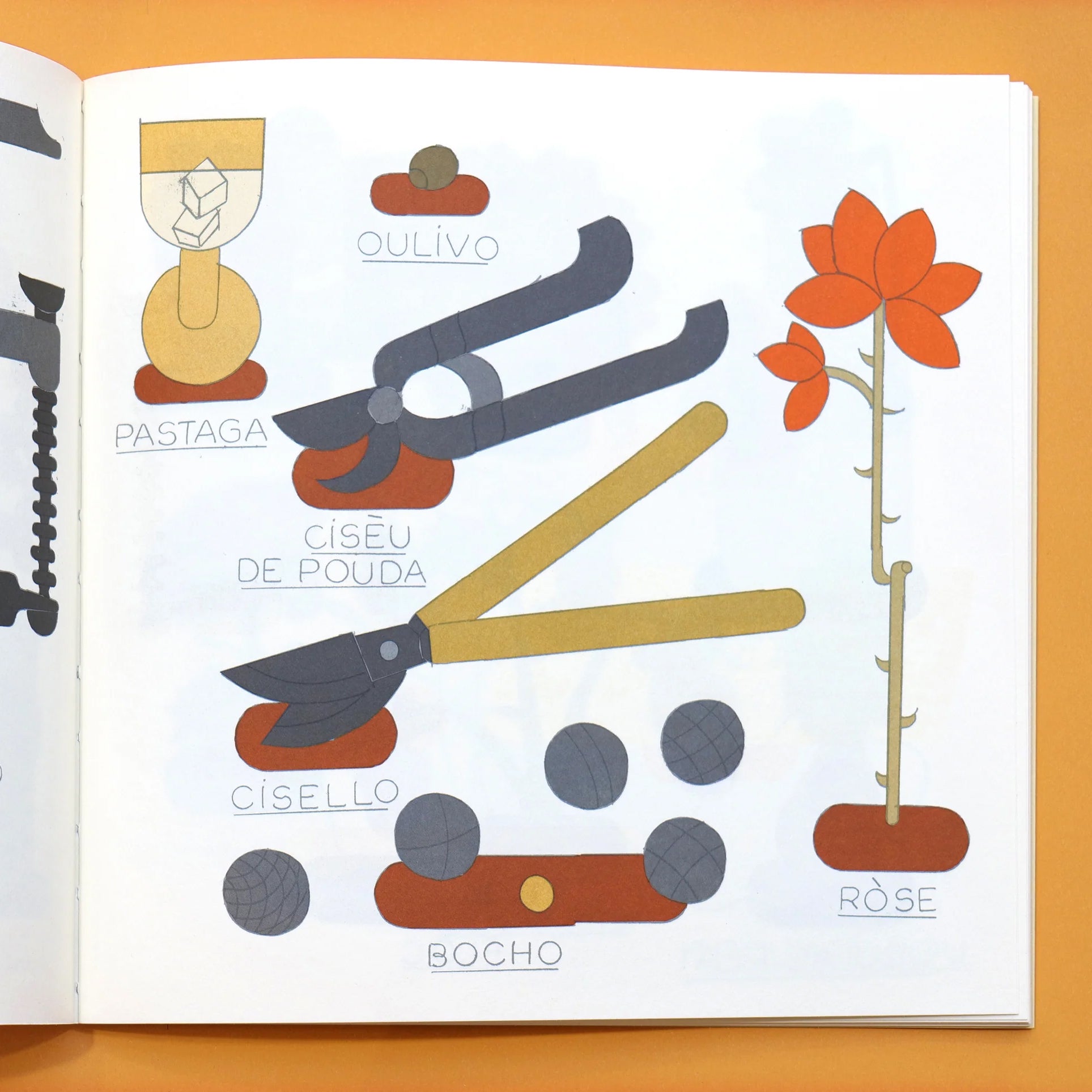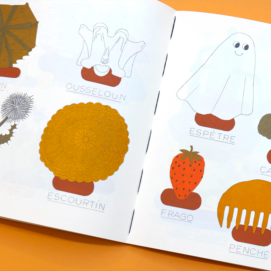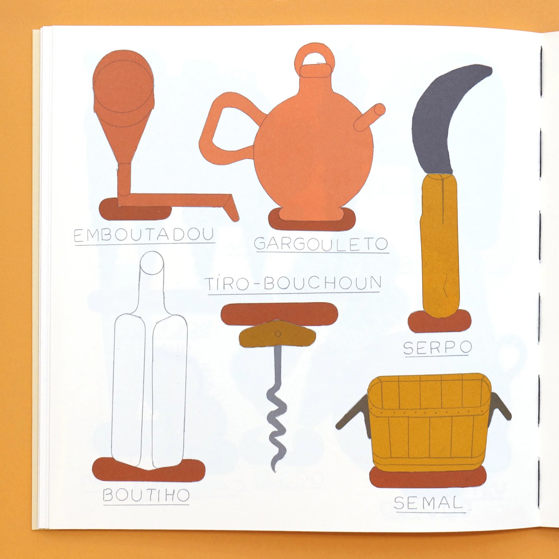 Gròs Santoun is an image maker of rural Provence. A small, intimate encyclopedia of her daily life, Bettina Henni has collected through drawing objects and figures linked to popular traditions, nature, crafts and peasant life. Each object, drawn on a base, is accompanied by its name in Provençal: it's a bit like a catalogue of santons! A catalogue of objects that immerses us in the imagination of Provence, that of craftsmen, gatherers, peasants...