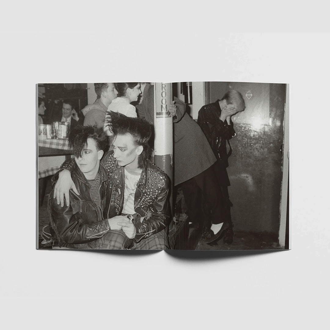 • Blitz Club Blitz Kids regroupe une série d’images prises en 1980 par le photographe Homer Sykes dans le célèbre club londonien, le Blitz Club. Dans les années 1970, Londres traverse une grave crise économique. Steve Strange et Rusty Eagan y fondent les « Nuits Bowie » au Blitz Club, dans un club sordide en sous-sol à Soho, où Steve, intraitable à l’entrée, n’autorise que les « gens étranges et merveilleux » — au point de refouler Mick Jagger. Le Blitz Club devient vite célèbre, attirant des étudiants en art et en mode qui cherchent à s’éloigner du punk et à expérimenter de nouvelles formes d’expression, souvent androgyne. Situé entre les écoles St Martins et Central School, il se transforme en véritable laboratoire de style où se façonnent des tendances qui deviendront le mouvement des Nouveaux Romantiques.