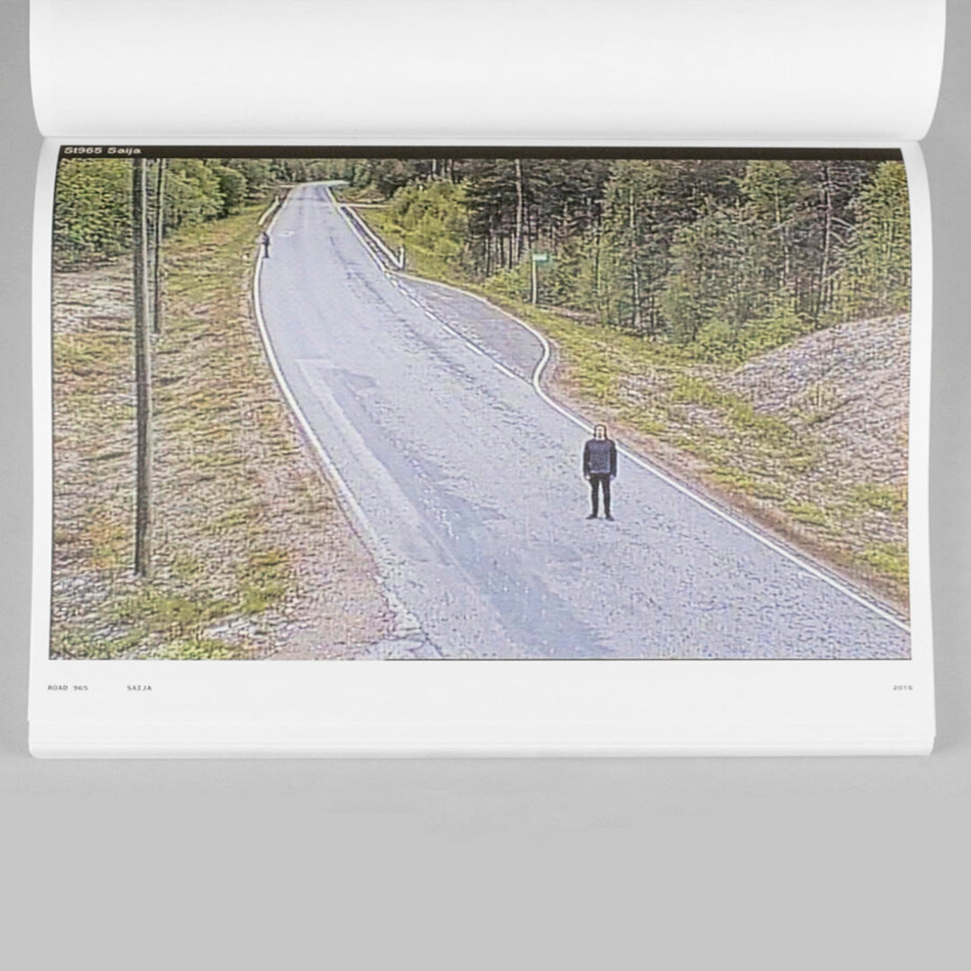 I on the road / Weather Camera Self-portraits - est le premier livre de l'artiste finlandais Tatu Gustafsson et se compose de 200 autoportraits pris à l'aide d'un appareil photo météorologique. Lorsque Gustafsson a commencé à faire des autoportraits en 2012, il était à la recherche d'une autre façon de faire des photographies et voulait remettre en question le concept de l'appartenance des images associées à la photographie traditionnelle. Découvrant que les caméras météorologiques et de circulation finlandaises prennent des photos toutes les 12 minutes et les stockent en ligne pendant 24 heures, Gustafsson a entrepris un voyage à travers le pays, se plaçant devant ces caméras extérieures. Il en résulte des images obsédantes qui capturent l'essence de la solitude. Utilisant plus de 700 caméras de bord de route disséminées dans toute la Finlande, Gustafsson a accepté le manque de contrôle inhérent à ce processus. Passant une semaine par mois dans sa voiture, il a traversé le pays, devenant une présence fantomatique au milieu des paysages tranquilles capturés par les caméras automatiques.