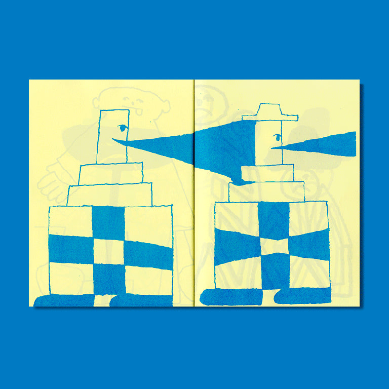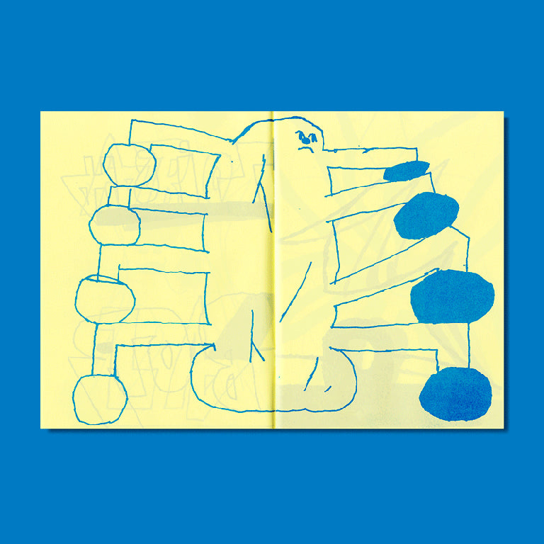 Livre de dessins d'Eric Reh ! Riso Imprimé à Paris par Quintal Atelier en bleu sur Kaskad Yellow 80gsm. Edition limitée à 200 exemplaires. Ce livre fait partie de la série "Drawing Book Project", publiée par Quintal éditions.