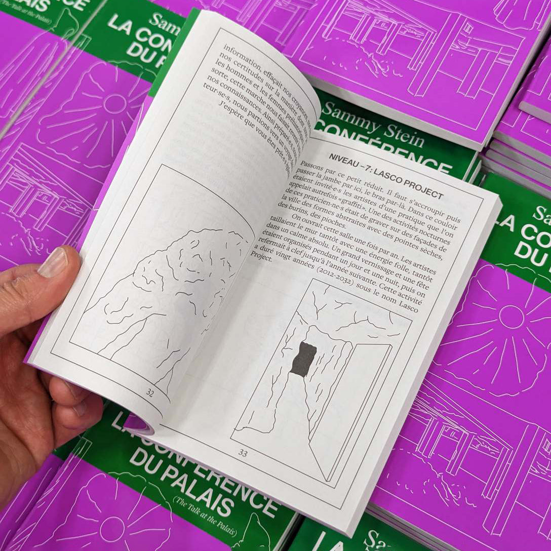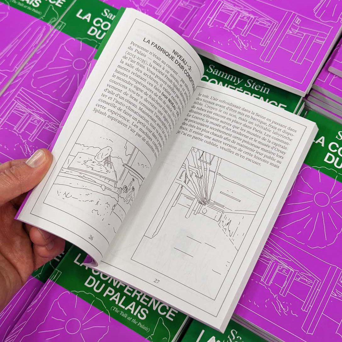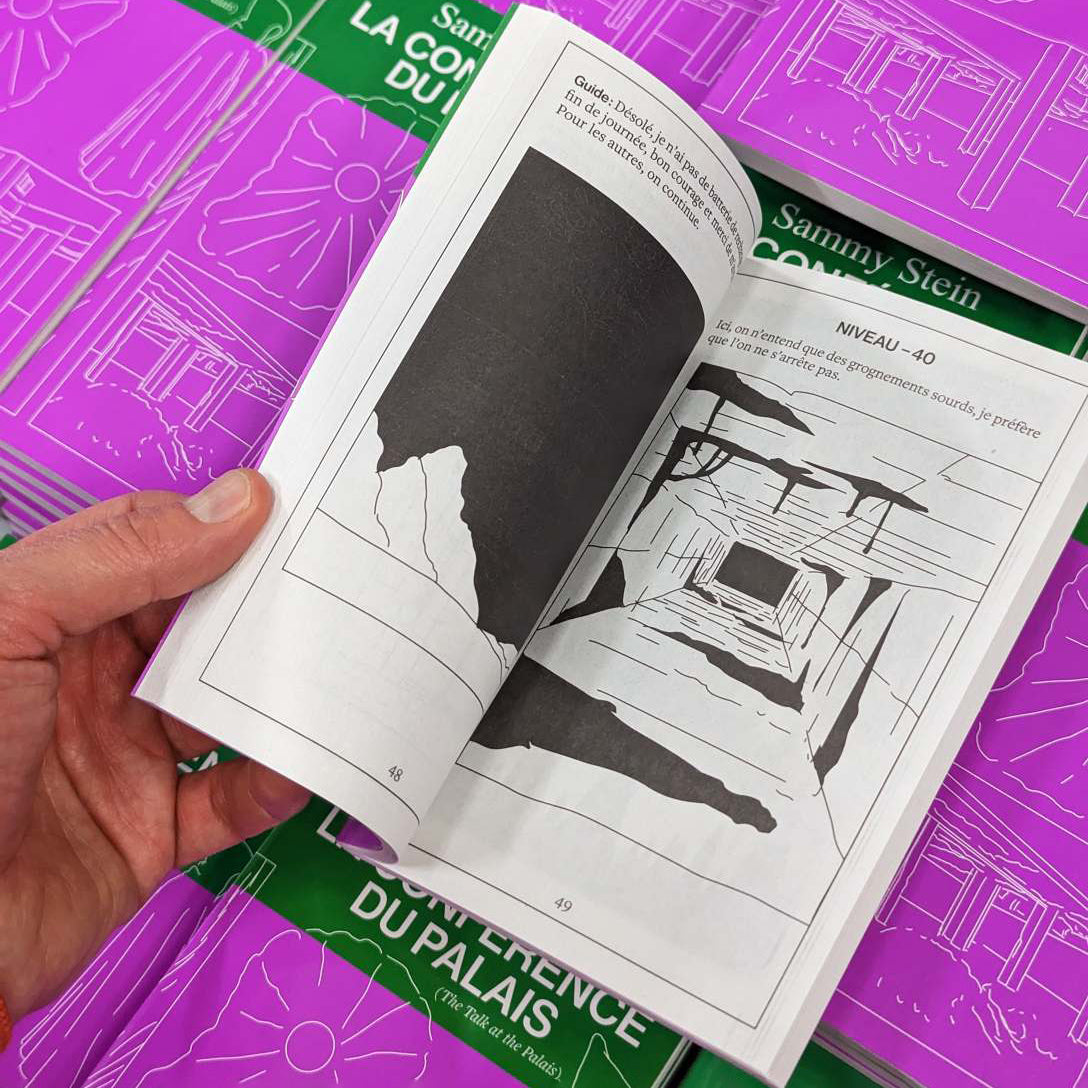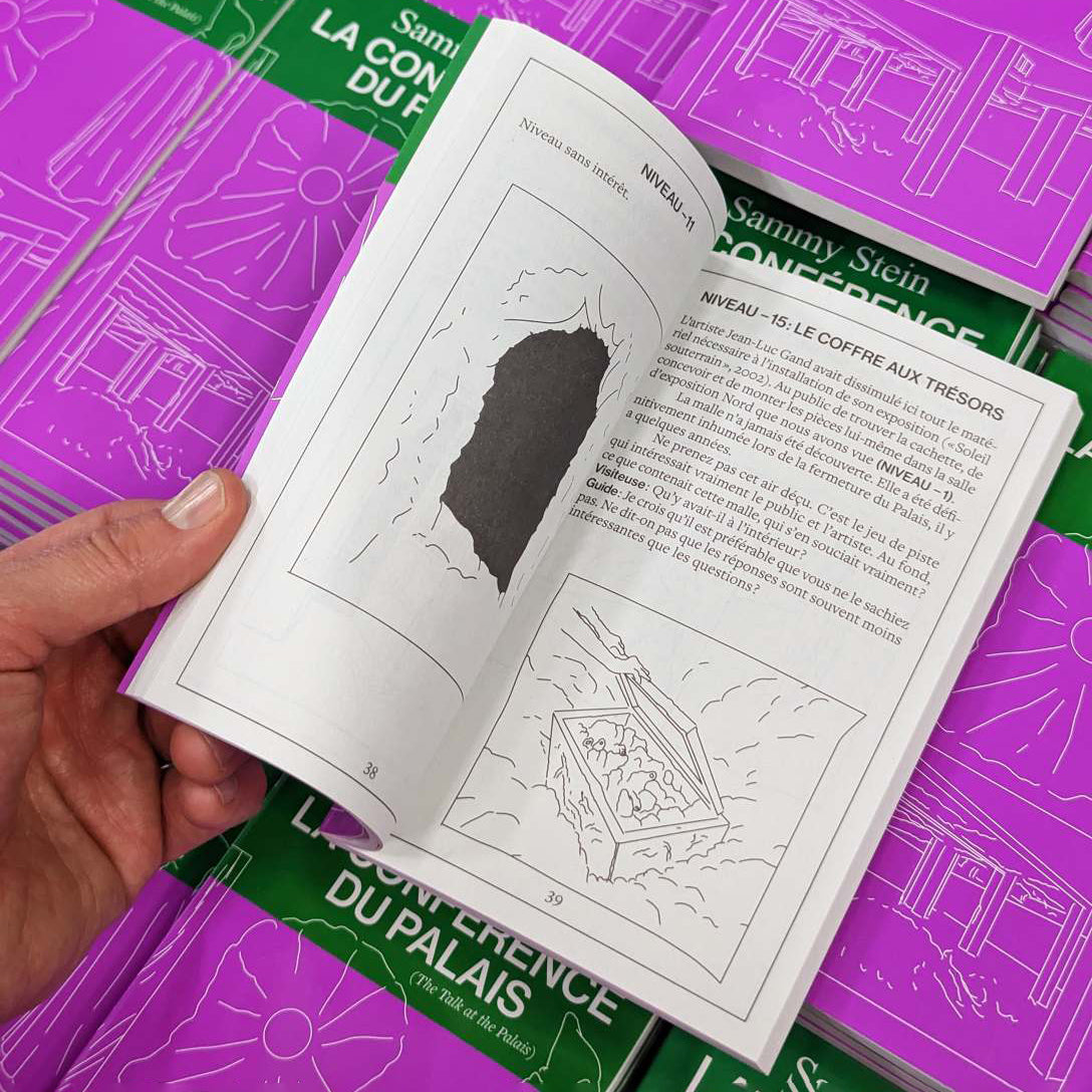 \n"Drawing on the history of the building and its programming since 1937, relying on anecdotes and rumors of the place, Sammy Stein has created a drawn fiction as part of the Grand désenvoûtement that is as much a conference as a hiking guide. A guided tour from the upper floors of a ruined Palais de Tokyo to its underground levels, takes readers into layers of forgotten stories, transformed by fiction and putting into perspective the imaginaries associated with the institution or produced by it. Each level of the drawn building reveals traces of great artistic gestures, the economic model of the art center, political episodes, destroyed spaces and fantasized exhibitions. Sammy Stein allows these stories to escape from the Palais de Tokyo by offering the public the chance to leave with a copy of the book. On the walls, photographs divert the representations of this monumental architecture and the many institutions it has housed over the years. 1930, revealing repressed imaginations at the crossroads of politics, fantasy and romance." Adélaïde Blanc, co-curator of the exhibition "Le Grand désenvoutement", Palais de Tokyo, December 2022