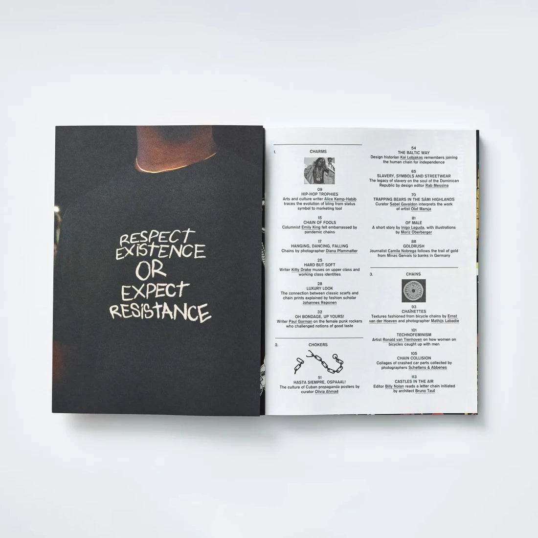MacGuffin 11: The Chain - Des breloques aux colliers, en passant par les chaînes et les entraves, MacGuffin Nº11 explore les nombreuses manifestations de l’objet le plus contradictoire qui soit : la chaîne. Portée avec amour depuis des temps immémoriaux, elle est aussi le symbole ultime de l’esclavage et de la souffrance. Reliant les membres de la famille royale et les rappeurs, les punks provocateurs et les voitures accidentées, les jupes de cyclistes et les écharpes classiques, les lutteurs en cage et les guerriers médiévaux, les hyperliens et les maisons hantées, les manifestants baltes et les révolutionnaires cubains, The Chain réunit Inigo Laguda, Jacqueline de Jong, Harris Blondman, Scheltens & Abbenes, Olivia Ahmad, Rab Messina, Kai Lobjakas et bien d’autres.