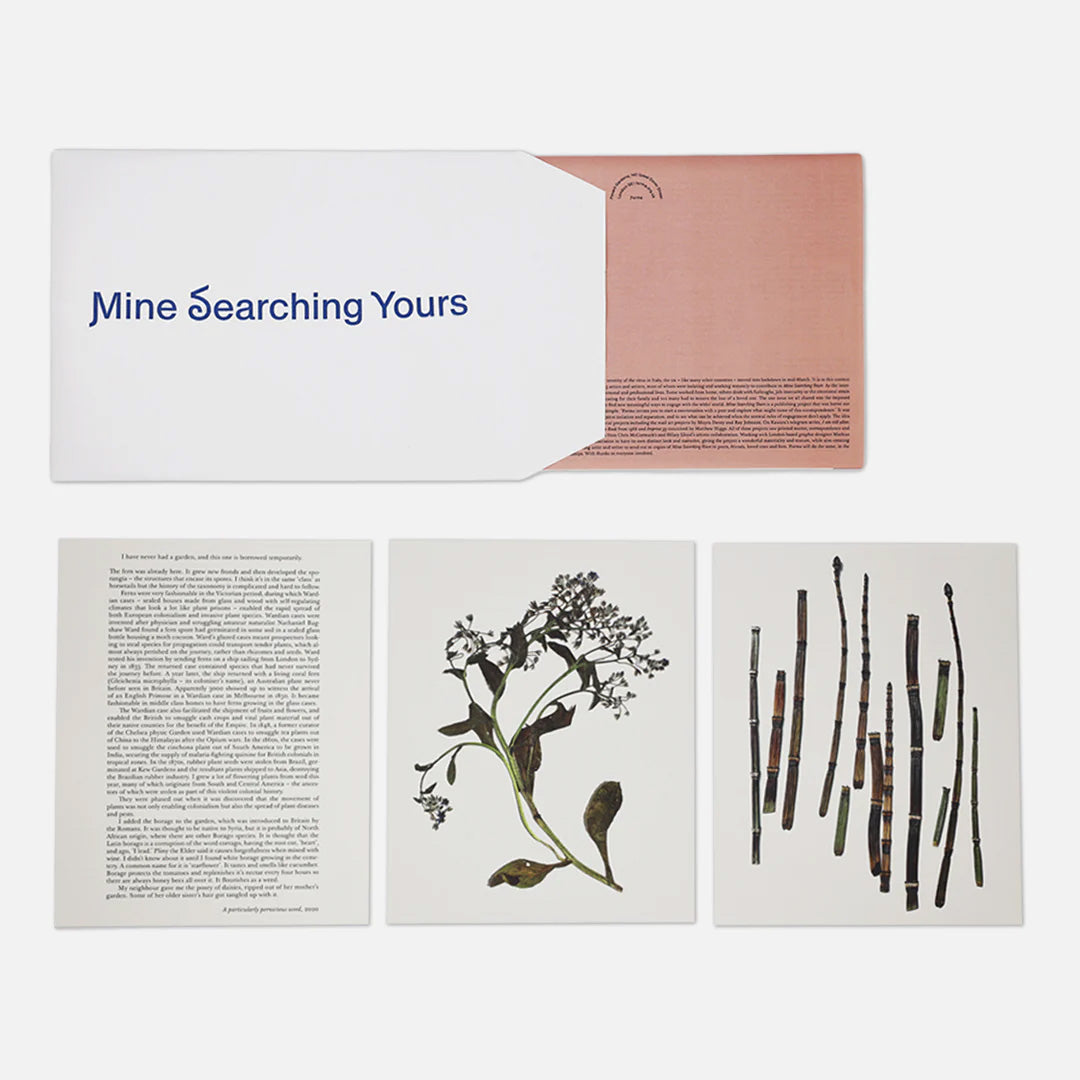 Mine Searching Yours is a collaborative publishing project by 15 international artists and writers. Commissioned by Forma during the 2020 global lockdown, the project takes inspiration from the rich history of Mail Art and hybrid publishing projects. It invites artists to connect and correspond with their peers during a time of uncertainty, when we all collectively face the challenges of enforced separation and isolation brought upon us by the Covid-19 crisis and the wider social and political context of 2020.