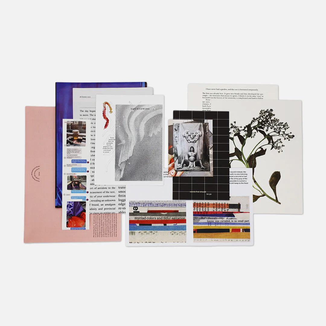 With contributions from Gery Georgieva and Kasia Wozniak, Alice Hattrick and Julia Crabtree & William Evans, Hilary Lloyd and Chris McCormack, Himali Singh Soin and Lekha Jandhyala, Erica Baum and Idra Novey, Molly Palmer and Rebecca Jagoe, Erica Scourti and Caspar Heinemann.