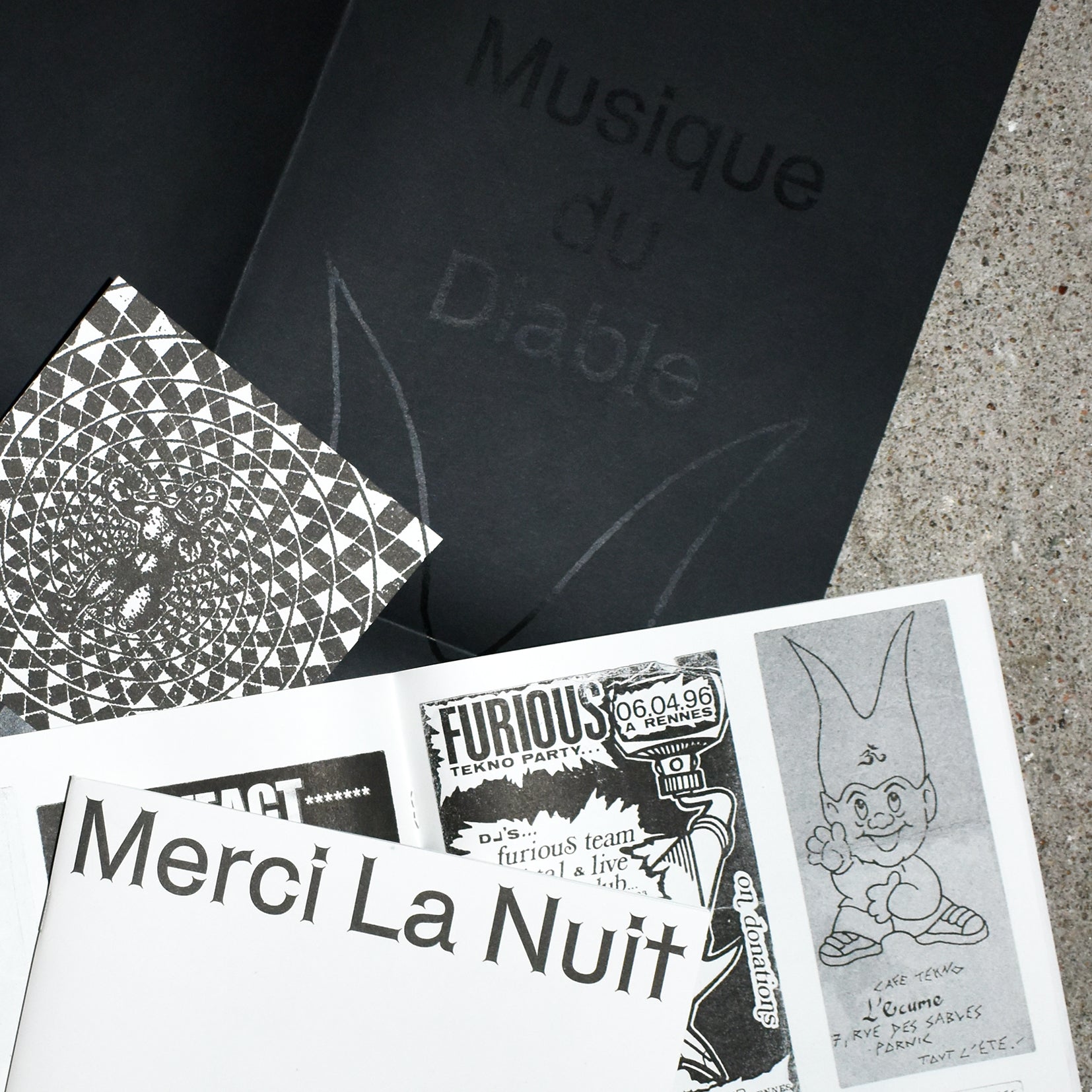 Merci la nuit est un projet de documentaire sur la culture de la rave des années 90 à aujourd'hui en Europe. Pendant le processus de création, les réalisateurs de Merci la nuit ont conçu le fanzine Musique du diable qui rassemble les collections de flyers de Mö, DJ-artiviste de free party.
