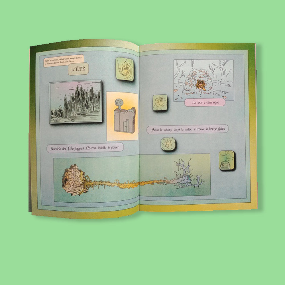 Dessiné en mars et avril, imprimé en mai et juste arrivé en juin, le livre raconte l'histoire d'un voyageur croisant la route d'un potier qui lui présente ses céramiques, avant qu'une éruption volcanique ne se déclenche.
