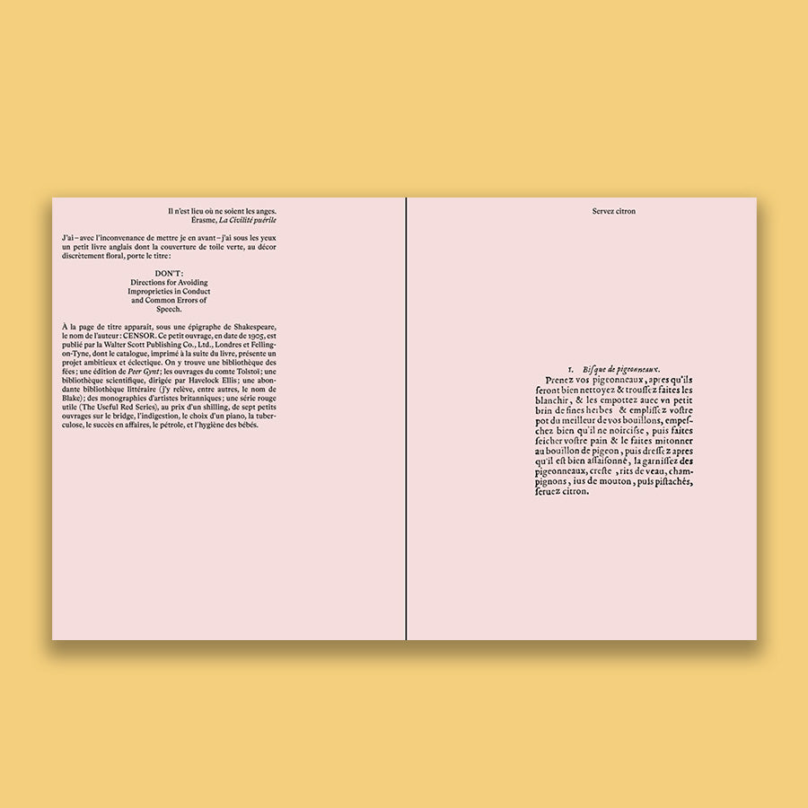 To accompany recipes and photographs, a text by Jean-Claude Lebensztejn