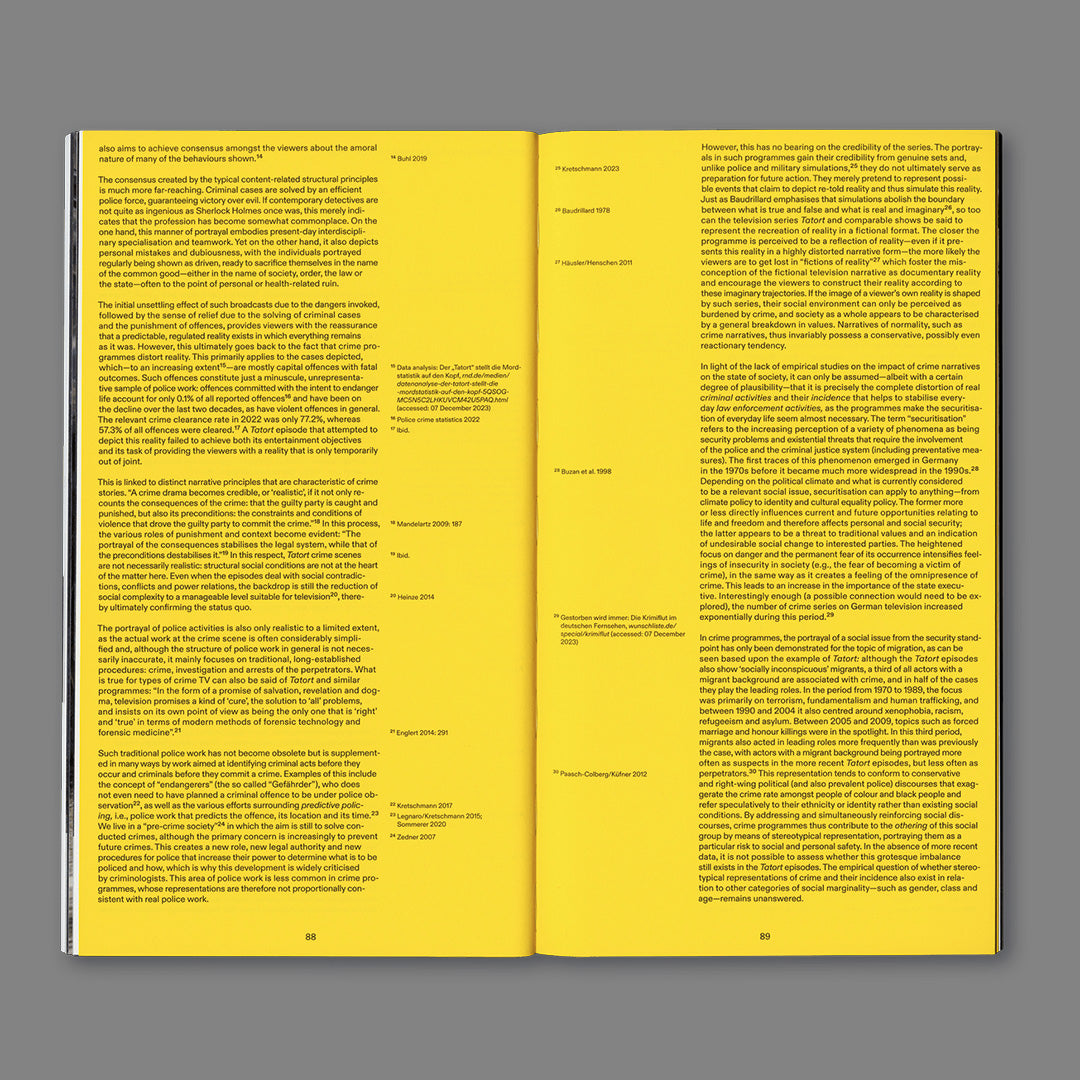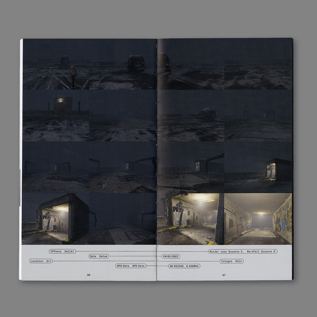 THE PERFECT CRIME: Concerning the Murder of Reality - L'Allemagne est un pays de fiction policière. Si on le souhaite, on peut assister à des meurtres et des homicides fictifs plusieurs fois par jour sur les principales chaînes de télévision. Plus de 238 séries policières sont disponibles sur les six plus grandes chaînes de télévision allemandes. Basé sur la surreprésentation des meurtres fictifs à la télévision allemande, The Perfect Crime étudie l'effet des séries policières sur notre perception et notre comportement. L'œuvre examine l'utilisation des techniques d'imagerie dans le travail de la police et ses implications épistémiques, ainsi que la question de savoir comment les récits fictifs modifient notre perception de la réalité L'œuvre combine plusieurs techniques et approches photographiques : Staiger et Uchtmann ont réalisé des photographies sur les plateaux de tournage de séries policières allemandes, en surdimensionnant les scènes, ce qui conduit à une abstraction de ce qui est représenté, en contraste avec des images supposées authentiques de cadavres et de scènes de crime. Dans la série de portraits, plusieurs acteurs ayant joué le rôle de victimes et d'auteurs dans des séries policières allemandes ont été modifiés par une intelligence artificielle afin de créer de nouvelles versions possibles d'eux, liées à la création d'images fantômes dans le cadre du travail réel de la police. En outre, les lieux qui ont servi de décor à des scènes de crime fictives sont documentés sous forme de reconstructions en 3D grâce à des méthodes photogrammétriques, ce qui renvoie à l'émergence potentielle de ce que l'on appelle les « espaces de la peur ».