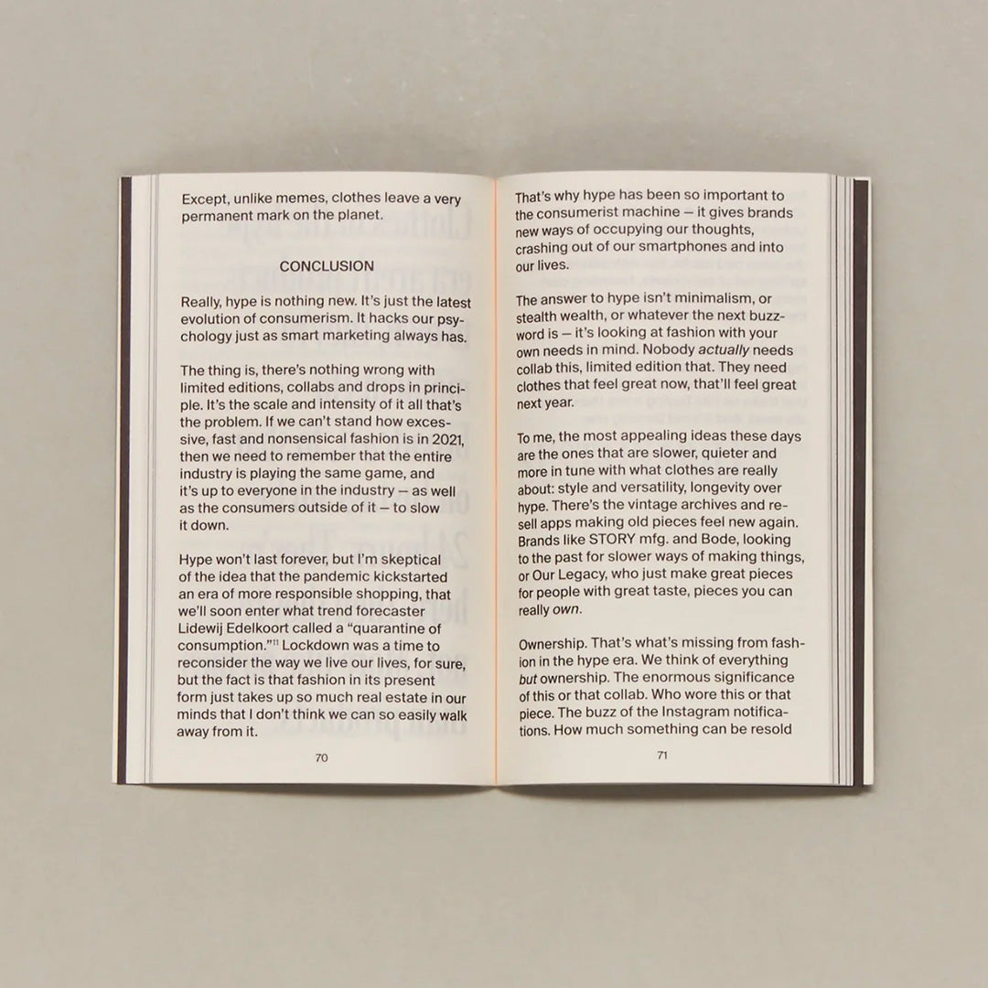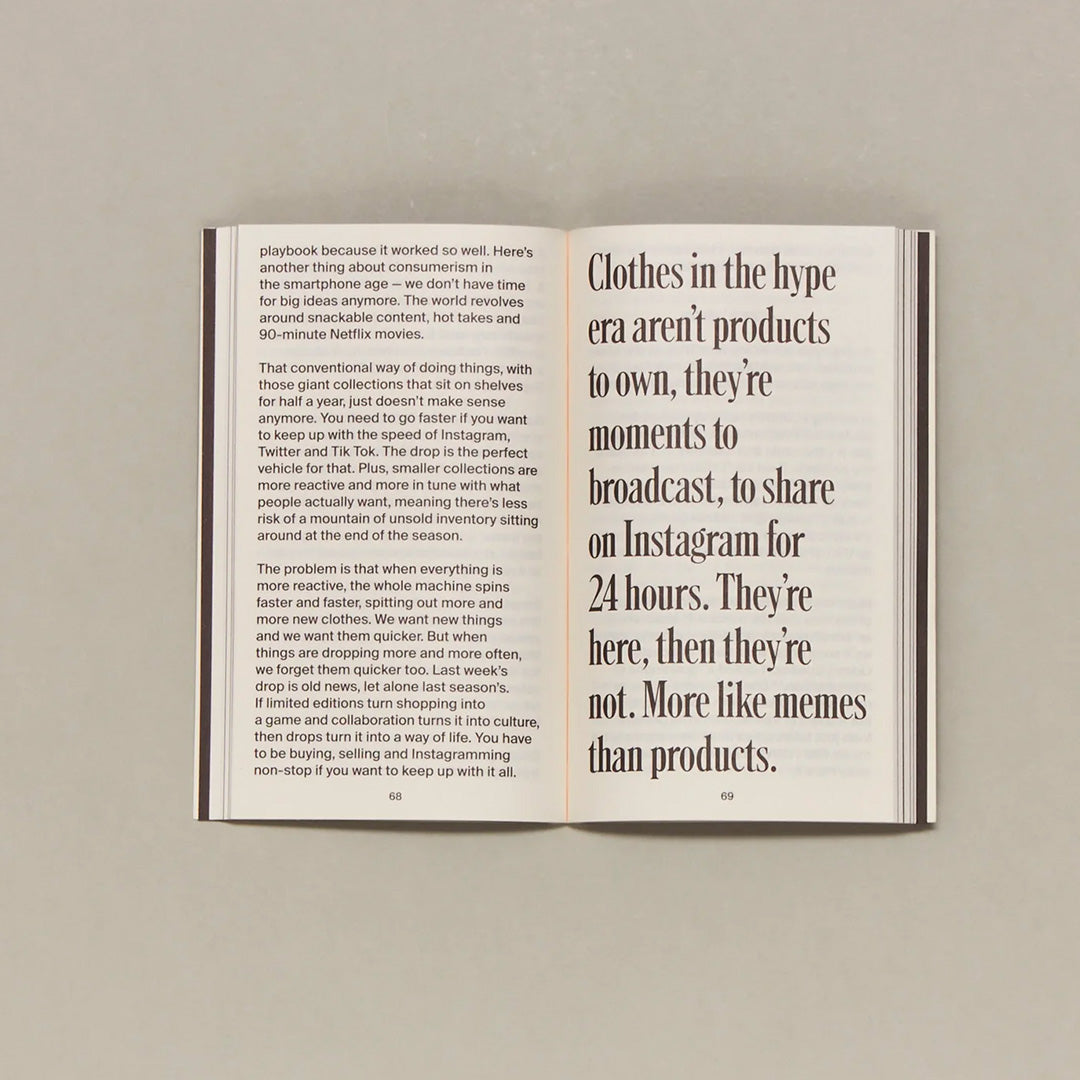 Former Highsnobiety Style Editor and founder of Instagram account @future__dust, Alec Leach examines why we continue to buy so many clothes, despite all we know about fashion and its impact on the planet. With behind-the-scenes insights and philosophical musings supported by infographics and magazine-style pull quotes, Leach takes readers on a journey through the inner workings of consumerism and online culture, touching on sneaker hype, greenwashing and mindfulness along the way. The result is a manifesto for a slower, more intentional relationship with fashion, one that's better for us and better for the planet too.