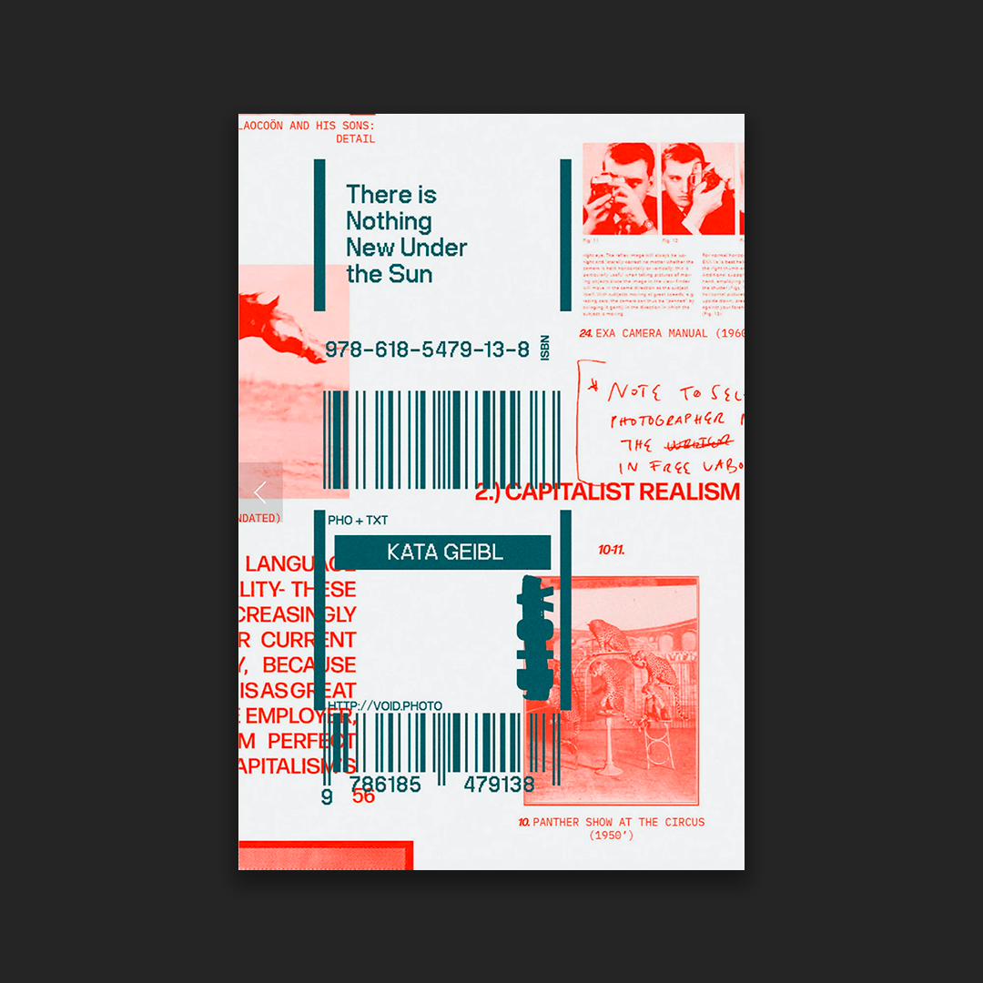 Photographer Kata Geibl’s first monograph is a reflection on contemporary culture and the world in which we live. Carefully planned images are mixed with stream-of-consciousness texts, while a poetic approach emerges through allegories, personal stories, and pairs of images. Her project deals with the rampant individualism that underpins our contemporary social, political, and economic system, and in particular, the environmental impact this has. Geibl takes the viewer on an associative journey where there are no clear answers but instead ambiguous questions. Her storytelling approach aims to guide these themes towards a deeper exploration of the rapid changes around us.