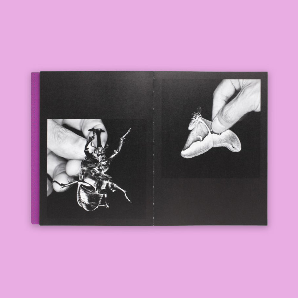 La troisième publication de Shinya Arimoto chez Zen Foto Gallery, éditeur basé à Tokyo, est une plongée dans le monde des insectes et des bestioles. Arimoto a passé neuf bonnes années à voyager dans les régions montagneuses d'Okutama et d'Hinohara - loin de la ville mais faisant toujours partie de la préfecture de Tokyo - pour capturer des papillons de nuit, des mantes, des vers, des araignées, des serpents, des grenouilles et toutes sortes de vermines très étroitement imbriquées entre les insectes et les reptiles,le fantôme de l'homme apparaît comme une forme de précense architectural obsédant la ville de Tokyo et ces zones montagneuses appartiennent à différentes faces d'une même pièce, et les insectes transcendent les frontières entre ces faces, libres d'aller et venir entre les deux.