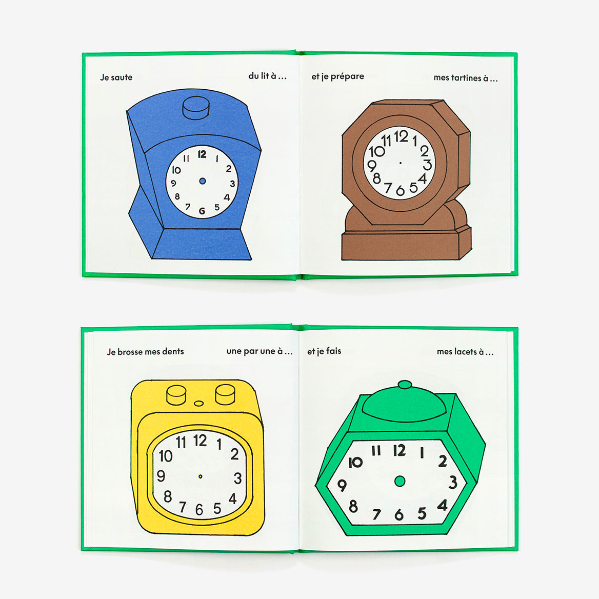 invite le lecteur à tracer lui-même les aiguilles des horloges pour apprendre à