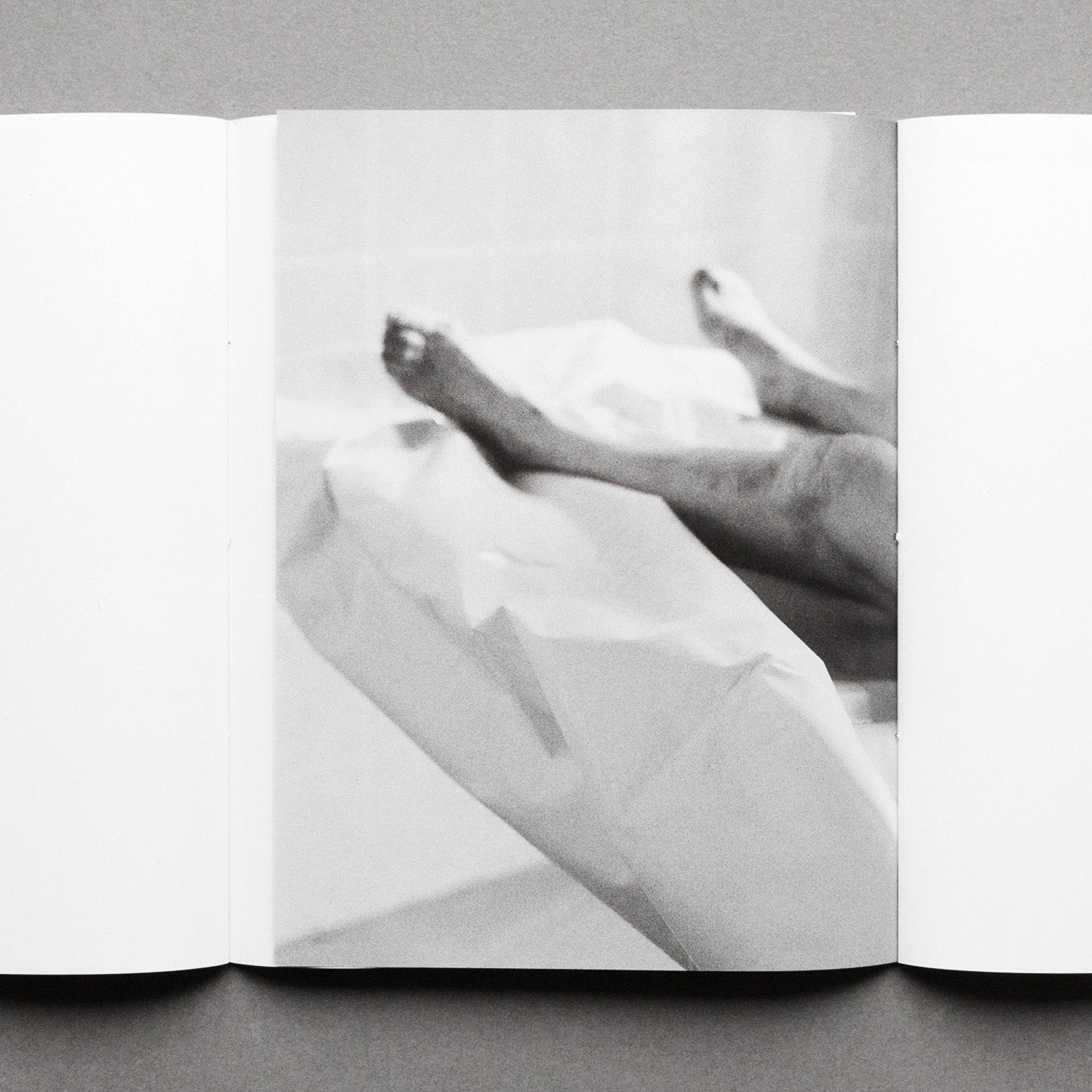 \n"J'entre avec l'employé des pompes funèbres dans une petite pièce stérile au sous-sol d'un hôpital. Elle est éclairée par des néons, le sol est en linoléum. Il y a des brancards en métal, des portes de réfrigérateur en métal, des outils en métal. Le couvercle du cercueil en zinc, des vis, un fer à souder. La seule chose qui réchauffe un peu l'atmosphère est la présence de tissus. Des draps blancs, des oreillers, des couvertures décorées. L'employé des pompes funèbres sort le brancard du frigo et soulève délicatement le drap. J'observe la scène à travers le viseur de l'appareil photo. En fait, je me cache. Nous sommes ici pour Mme R, une femme âgée aux cheveux gris et lisses.