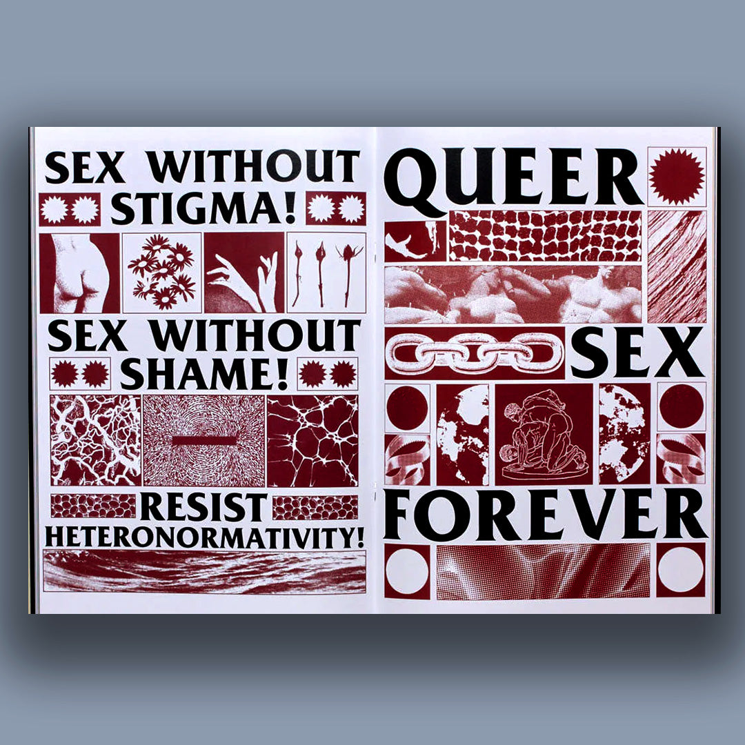 A 52 page A4 full colour magazine (or mega-zine??) collecting 4 years worth of queer anarchist poster graphics. Now in a fancy new edition with gold binding!