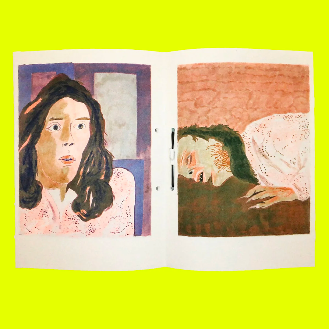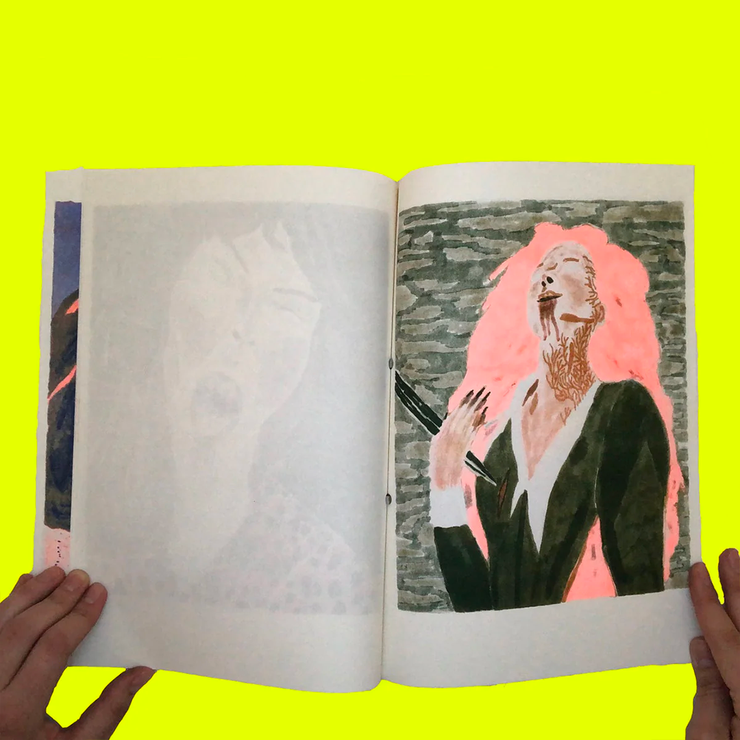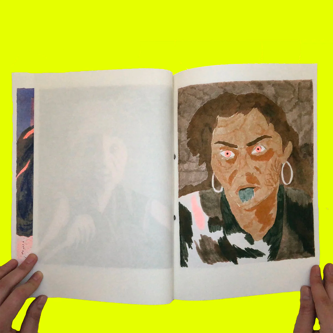 Published and printed by Colorama in April 2019, risoprint in medium blue, fluo orange, hunter green and flat gold, ribbon-binding with paper clip. First edition of 450 copies.
