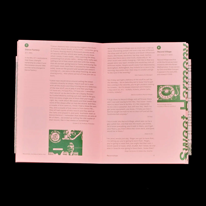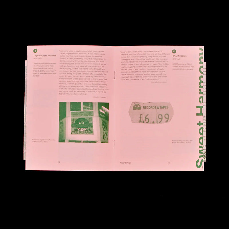 Limited edition booklet and map/poster which includes oral history interviews, links to playlists, archival flyers and photographs from the late 80s and early 90s in Waltham Forest. The book accompanies the project Sweet Harmony: Radio, Rave & Waltham Forest, 1989-1994.