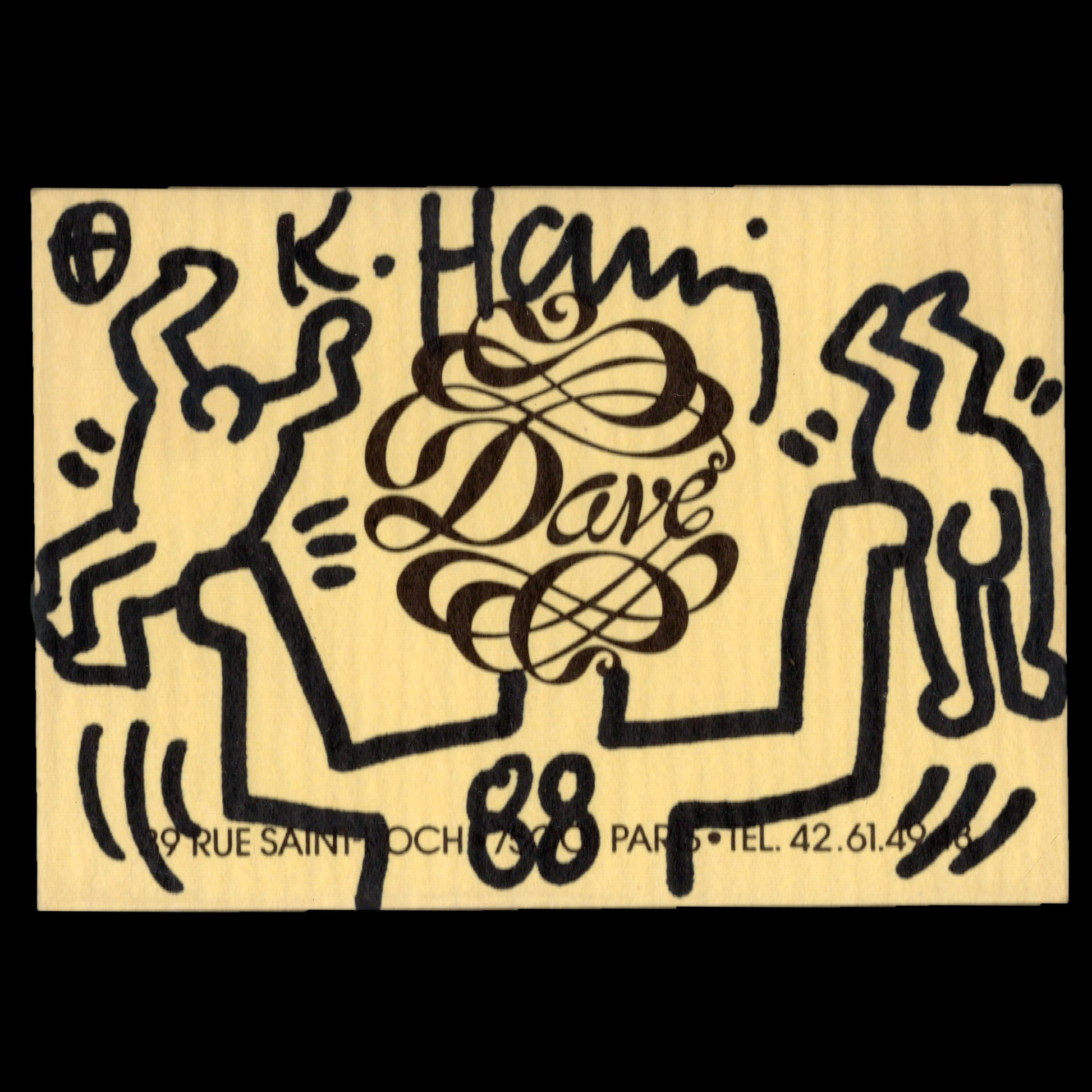 À côté des photos, on découvre aussi des oeuvres uniques, autant de marques d’affection offertes à Davé par ses amis artistes, griffonnées sur des menus, des cartes de visite ou même directement sur les tables. Des dessins inédits de Jean-Paul Gaultier, Keith Haring, George Condo et Martin Kippenberger, un mot d’Henri Cartier-Bresson, des cartes postales d’Helmut Newton et Guy Bourdin. A NIGHT AT DAVÉ est un récit qui s’écrit en images autant qu’en souvenirs.