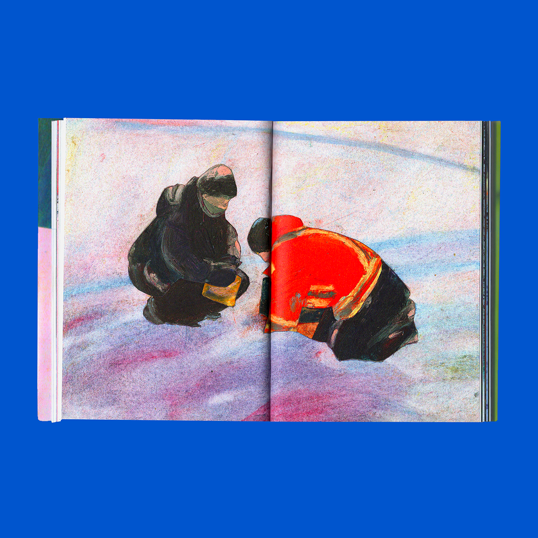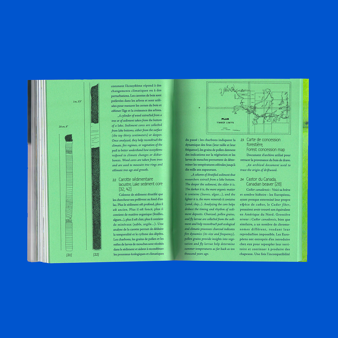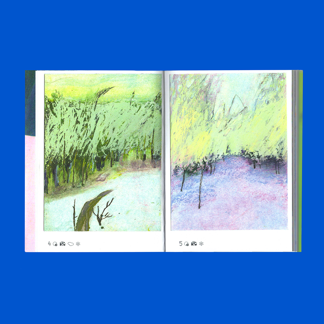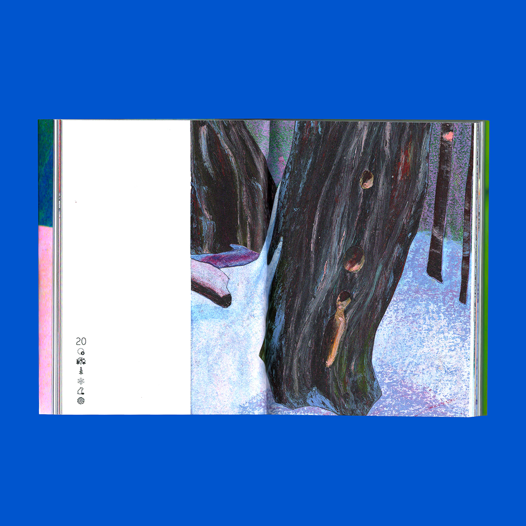 Petit Bois restitue une expérience d’immersion dans la forêt boréale québécoise. En 2024, Marianne Tricot passe deux mois dans une station de recherche en écologie forestière située au cœur de la forêt où elle accompagne une équipe de scientifiques sur le terrain. Le livre présente quatre-vingt douze pastels à l’huile réalisés dans cet environnement, en hiver et en été. Sous-bois, forêts brûlées, lacs gelés ou dégelés, traces d’animaux, tapis de mousse ou chercheur.ses au travail sont représentés. À la fin de l’ouvrage, un ensemble de mots – notions scientifiques, éléments observés, études menées, sensations éprouvées – sont rassemblés sous la forme d’un lexique. Trois points de vue sur la forêt boréale s’y mêlent : celui d’un chercheur en paléoécologie, celui d’une femme gardienne de territoire membre de la Première Nation Innu, et celui de l’artiste.