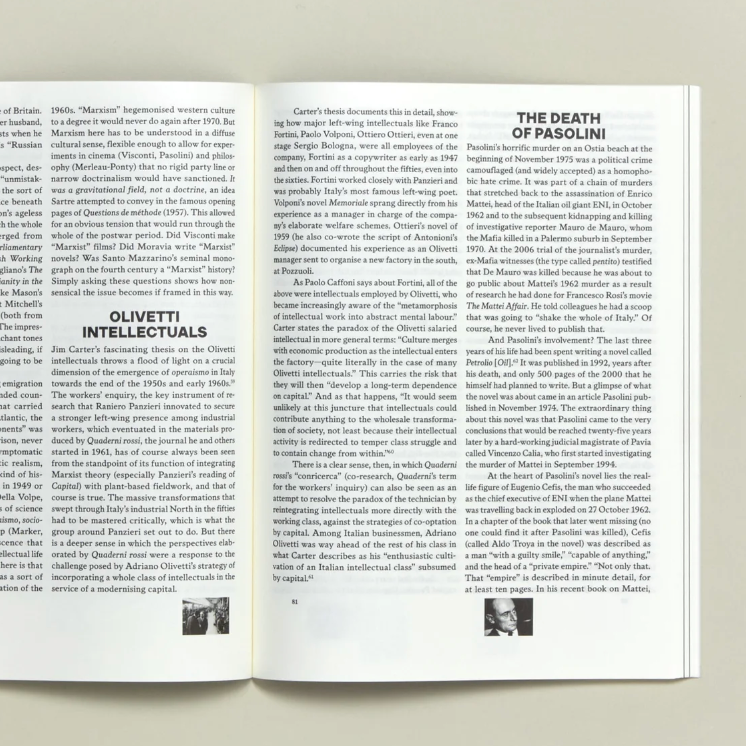 The themes range equally widely from the death of Walter Benjamin (reconstructed here from a remarkable documentary on the same theme) and the slaying of Pasolini to the work of British Marxist Perry Anderson, or the corrupt nature of India’s leading corporate groups, or the outstanding contributions of Italian and U.S. Black feminists to feminist theory. And under the rubrics which discuss film and literature, there is the same striving for diversity and depth.