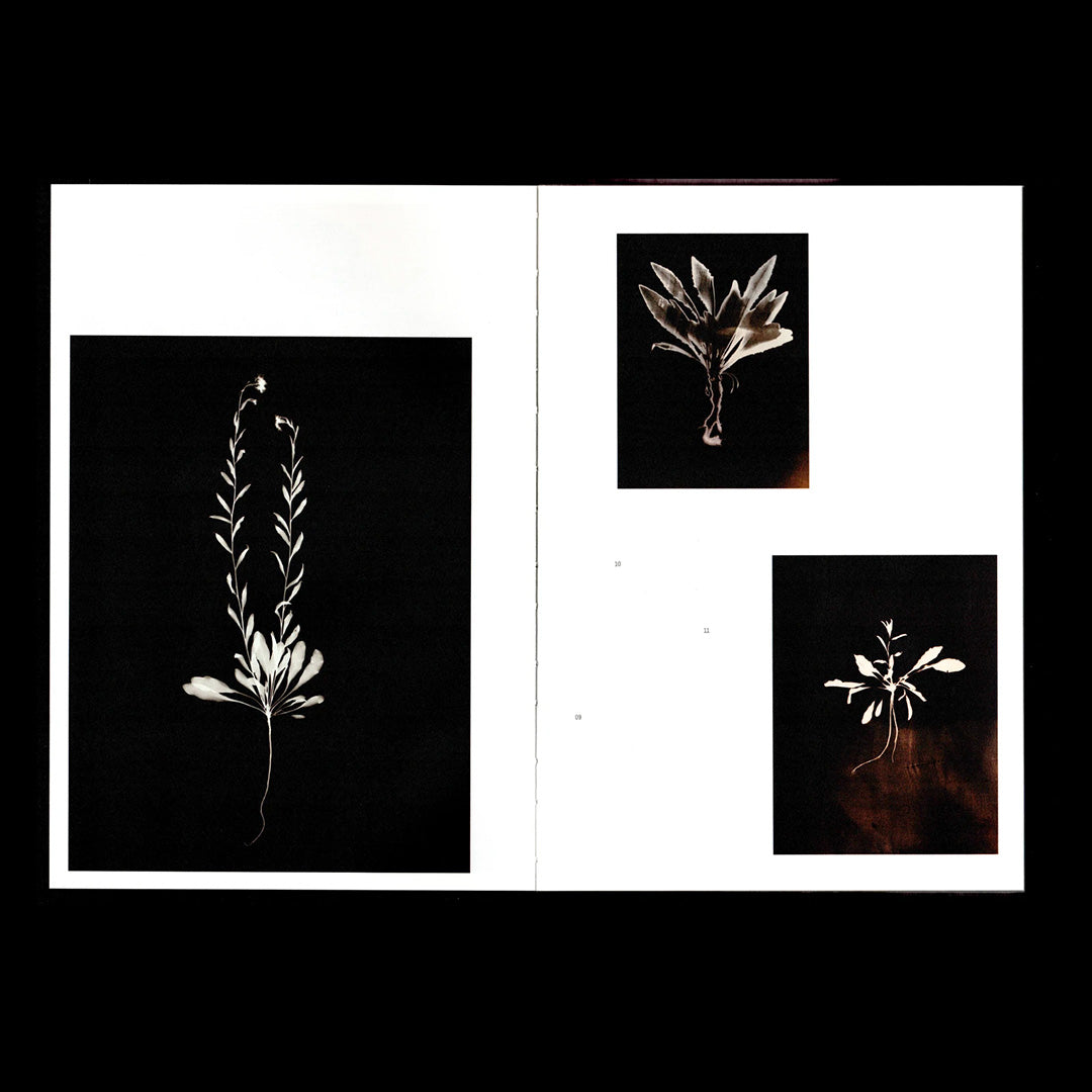 Pensé comme un herbier contemporain, le livre se déploie en deux volumes : le premier, purement visuel, présente une suite d’images sans légendes, ordonnées dans l’ordre alphabétique des espèces rencontrées. Les différents corpus d’oeuvres de Sophie Zénon - photogrammes, empreintes, paysages recomposés, sculptures ou fragments d’archives - s’y entremêlent dans une forme libre où la transparence du papier fait affleurer la mémoire, la trace, le fantôme. Le second volume, véritable cahier d’accompagnement, rassemble textes, entretiens et index, offrant les clés scientifiques et poétiques du projet.