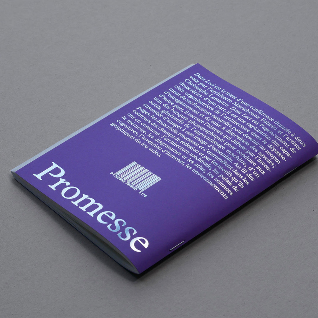 Data Loci est le texte d’une conférence donnée à deux voix par l’architecte Mariabruna Fabrizi et l’artiste Christophe Lemaitre. Data Loci est l’agencement de deux récits qui se répondent : d’une part, il est une exploration des capacités organisatrices de l’architecture dans le dépassement de ses fonctions naturelles pour devenir un moyen d’enregistrement des savoirs ; d’autre part, il raconte l’histoire qui débute par l’invention des banques d’images photographiques pour conduire aux outils génératifs de l’apprentissage machine.