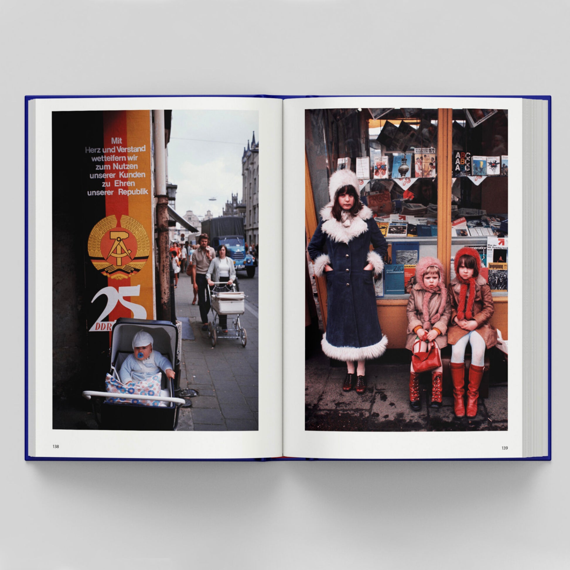 ‘East Germany’ revisits the former GDR through colour photographs from the archives of Thomas Hoepker (1936–2024). Hoepker was the first West German photographer officially permitted to photograph inside the GDR. From 1972 onward, he photographed primarily in colour on Kodachrome slide film, and he lived in East Berlin between 1975 and 1977. Travelling throughout the country, he snapped pictures of state propaganda and political parades, as well as the reality of the crumbling cities of the communist state. His deep sense of empathy for the people is palpable. Poet and singer Wolf Biermann, a close friend of Hoepker in the GDR, contributed an essay to the book.