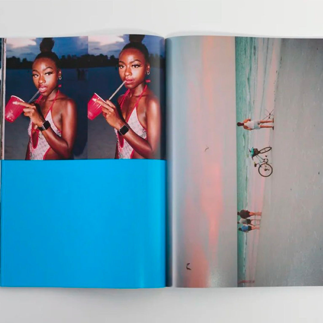 ‘Floridays’ is a multifaceted portrait of a synthetic society – gleaming and hyperreal on the surface, twitching with distortion underneath. Photographer Paolo Zerbini draws from the overloaded aesthetic of the ’90s to depict a world of sun-drenched beaches and forgettable strip malls, deafened by its own shrillness and numbed by its own bad taste. Graphically, the book leans into repetition. The same subjects recur throughout, shifting slightly with each appearance. Identity becomes a loop, not a line. The series is both a love letter and a critique: a chrome-plated guilty pleasure, polished, packaged, and unapologetically supersized. The dust jacket comes in five random versions.