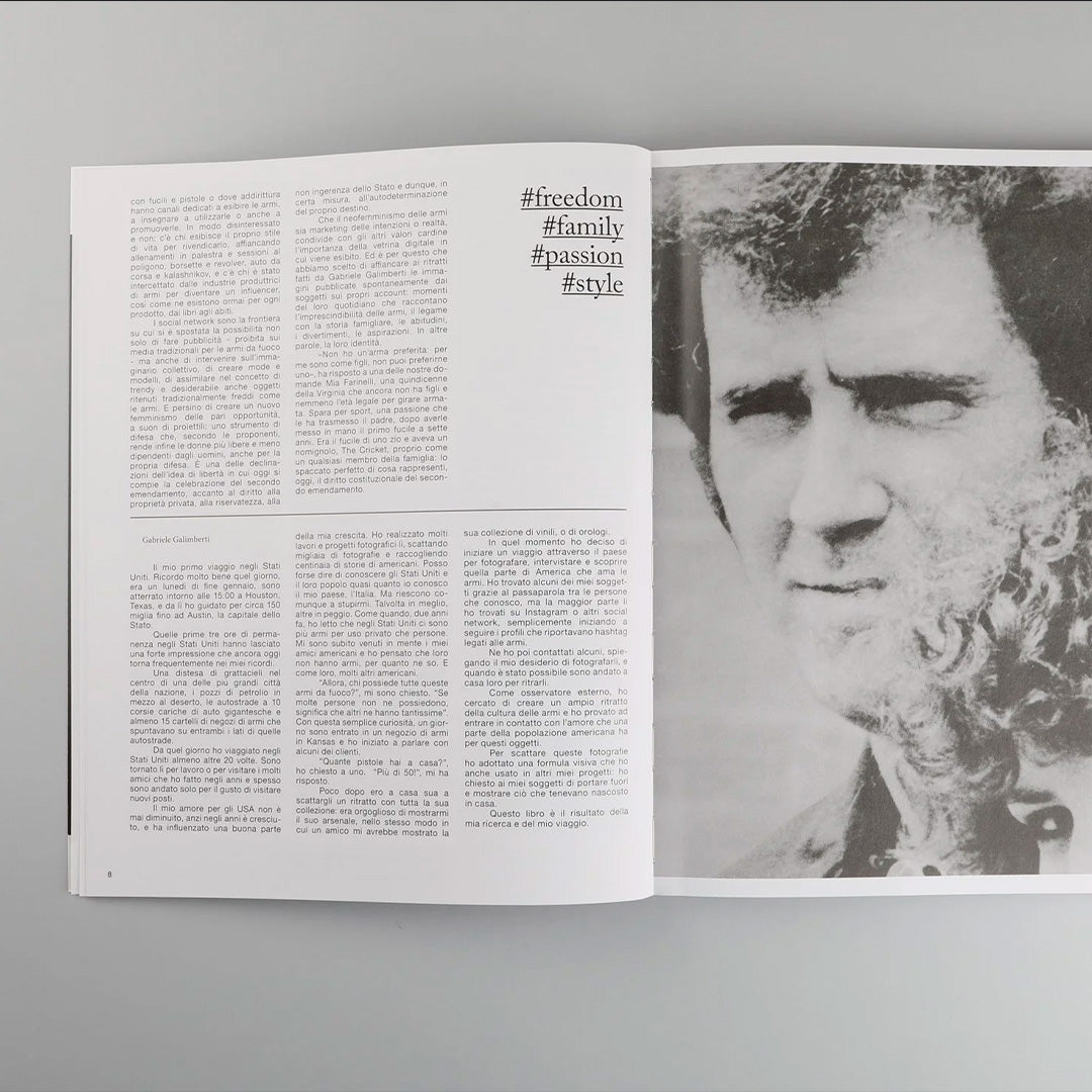 Half of all privately owned firearms in the world are in the United States – a staggering 393 million guns. This is not just market-driven, but rooted in tradition and the constitutional right enshrined in the Second Amendment, ratified in 1791 to protect citizens from potential government overreach. Today, it remains deeply embedded in American life. In this book, Gabriele Galimberti explores its meaning through four core values: family, freedom, passion, and style. Travelling across the US to meet proud gun owners and document their collections, his often unsettling portraits, paired with personal stories, offer a rare glimpse into the culture of firearms in America today.