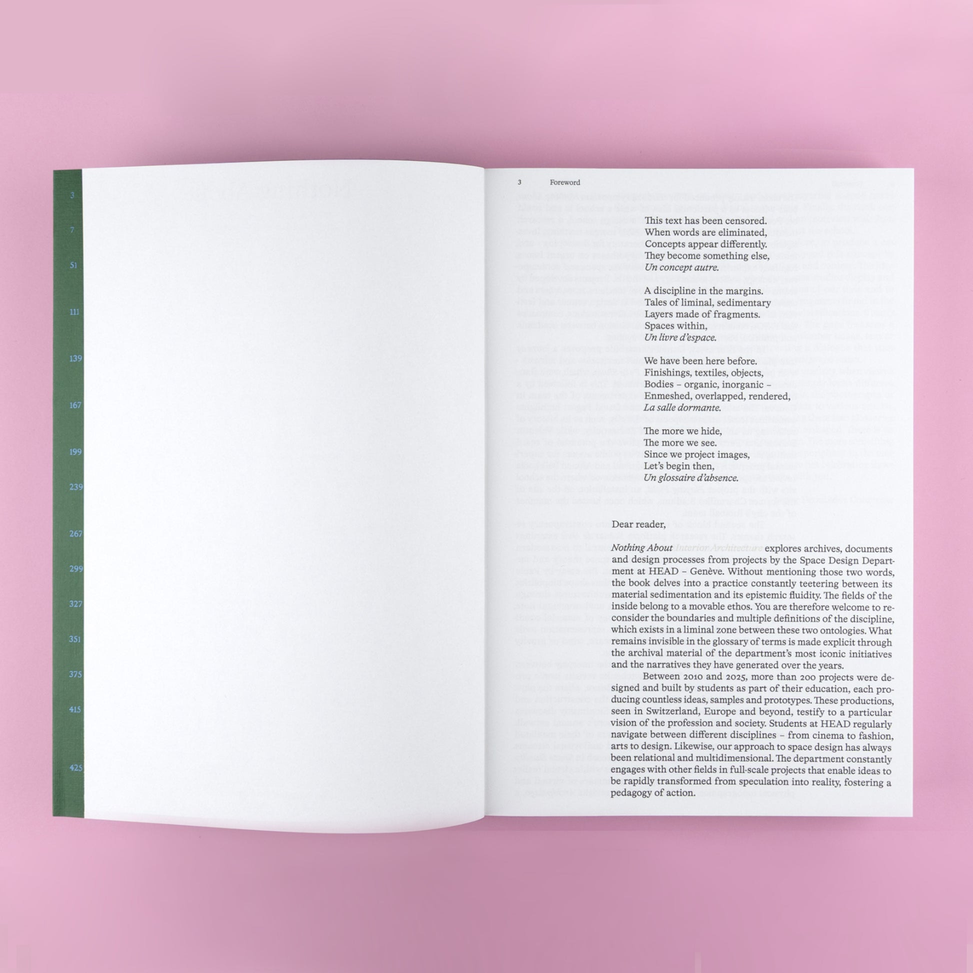 Often dissident, sometimes adherent, Nothing About is, in essence, indefinable because it is adaptive and fluid. Speculative or hands-on, this discipline – if we can call it that – displays all the ambivalences of our contemporary lifestyles: superficial and profound, profane and divine, present everywhere and nowhere, and often regarded as futile, even though it could nonetheless destroy the most beautiful of insides. This book brings together a variety of intellectual tools and insights – polysemic and ambiguous, bespoke and improvised, ornamental and criminal, spanning media, technology, the arts and other, often undefined fields – that analyze the impact of the discipline on contemporary design. In the end, what makes Nothing About charming is that this inside – insofar as it is still defined as such – has only the humble ambition of accompanying beings, both animate and inanimate, within their environment, like a friend who is never far away.