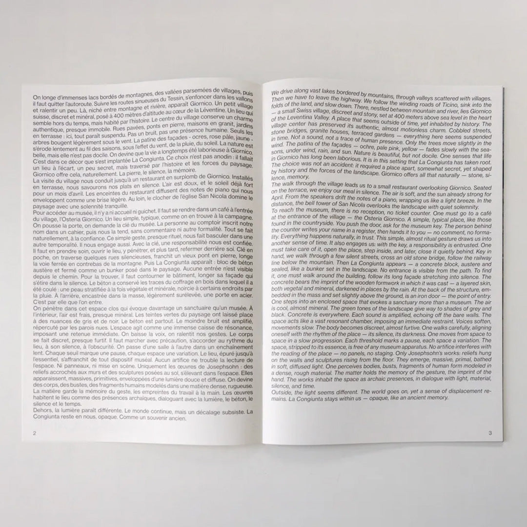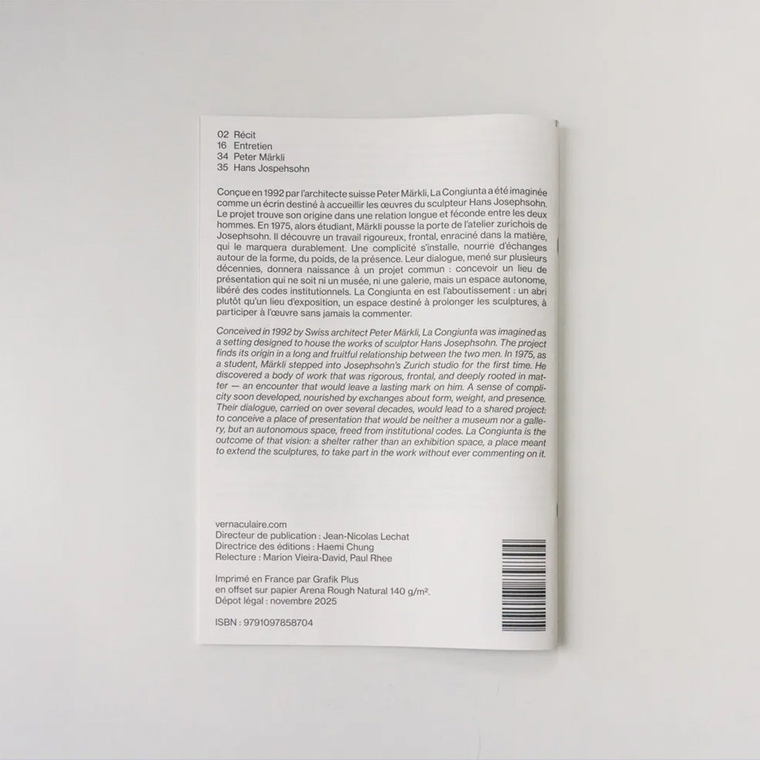 Conçue en 1992 par l’architecte suisse Peter Märkli, La Congiunta est un bâtiment en béton imaginé pour accueillir les sculptures de Hans Josephsohn. Le projet est né d’une relation longue entre les deux hommes, commencée en 1975 lorsque Märkli découvre à Zurich le travail rigoureux et frontal de Josephsohn.