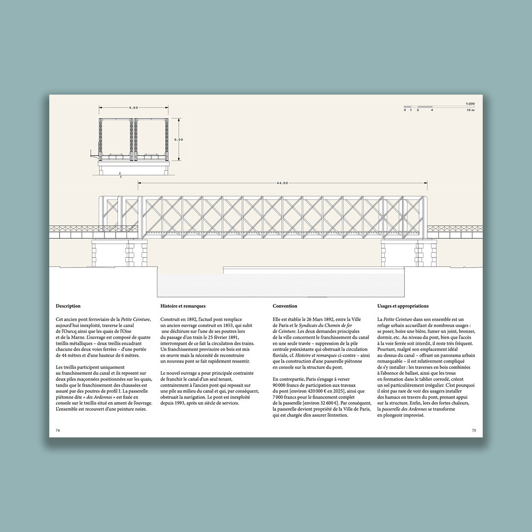Cet Atlas de l’Ourcq propose une exploration photographique du canal éponyme, menée entre 2023 et 2025. Loin d’une présentation exhaustive, l’ouvrage rend visible neuf patrimoines singuliers, révélant à la fois la complexité normative d’une infrastructure sous-exploitée et son potentiel d’intervention artistique. Le livre est accompagné d’une carte représentant le canal dans son ensemble.