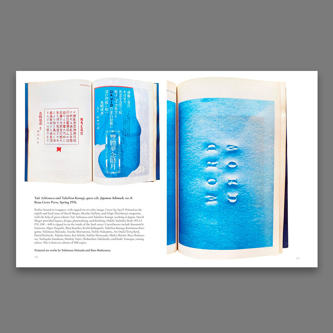 Contributors include: Mary Beach, Wallace Berman, bill bissett, William S. Burroughs, Henri Chopin, Judith Copithorne, Johanna Drucker, d.a. levy, bpNichol, Seiichi Niikuni, Tom Phillips, Miroljub Todorovic, Cecilia Vicuña, Marian Zazeela.